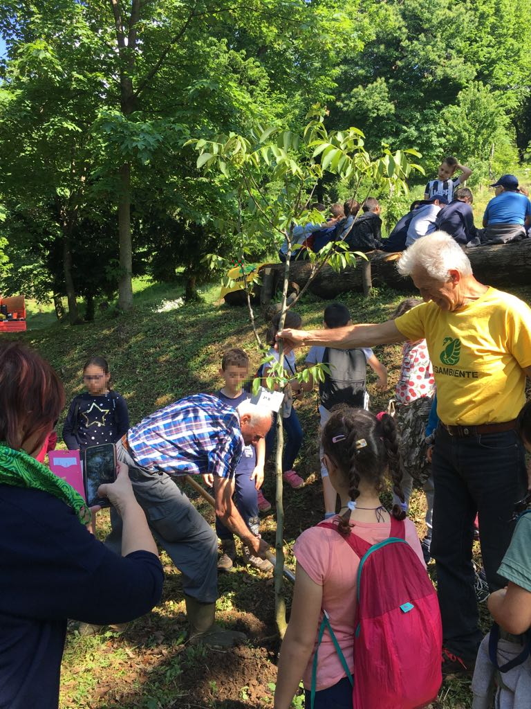 Qui i bambini aiutati dai volontari, hanno messo a dimora varie piante di noce e nocciole. Le maestre hanno poi piantato un nespolo. All’iniziativa molto partecipata e coinvolgente era presente Mario Gatti, consigliere comunale con delega all’ambiente e promotore negli anni della riqualificazione dell’intera area.