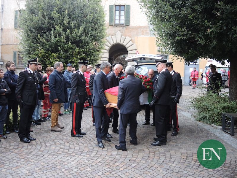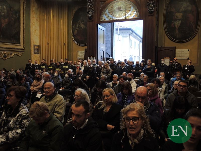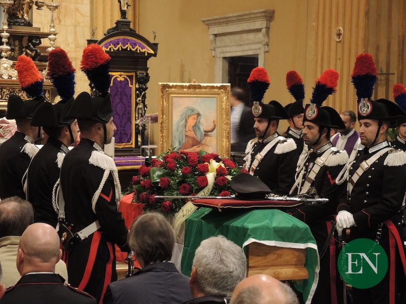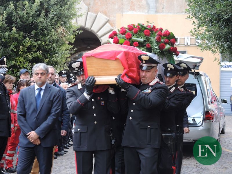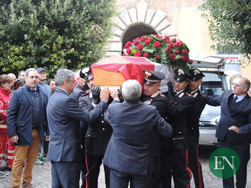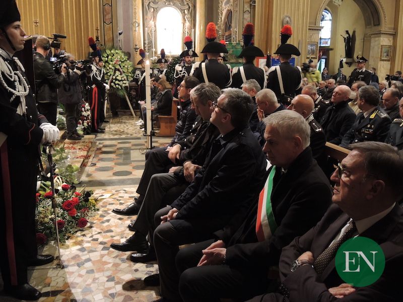 ASSO – Le più alte cariche dell’Arma e i rappresentanti delle altre forze dell’ordine e dei vigili del fuoco, i sindaci del territorio in fascia tricolore, il presidente della provincia, questore e prefetto, rappresentanti istituzionali, volontari delle associazioni ma soprattutto tanti cittadini comuni per l’ultimo omaggio a Doriano Furceri, luogotenente dei carabinieri morto nella drammatica sparatoria nella caserma di Asso.