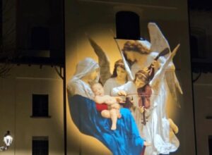 Il pomeriggio è entrato nel vivo con l’attesissimo spettacolo di ventriloquismo e magia, accolto con entusiasmo da bambini e famiglie. Momento particolarmente suggestivo, la proiezione artistica che ha illuminato la facciata della chiesa del Santissimo Crocifisso in Piazza Discacciati, destinata a rimanere visibile per tutto il periodo natalizio. Tra i presenti anche gli ospiti della RSA Emmaus, che hanno partecipato alla festa regalando un canto natalizio molto sentito.