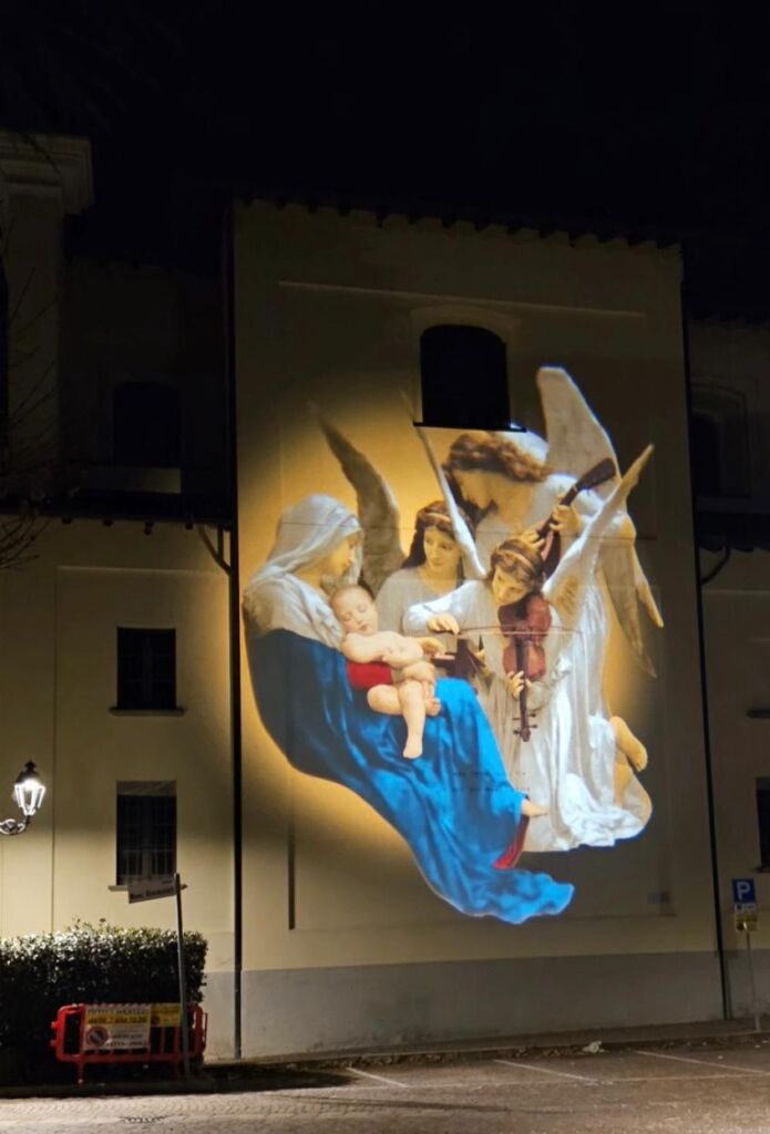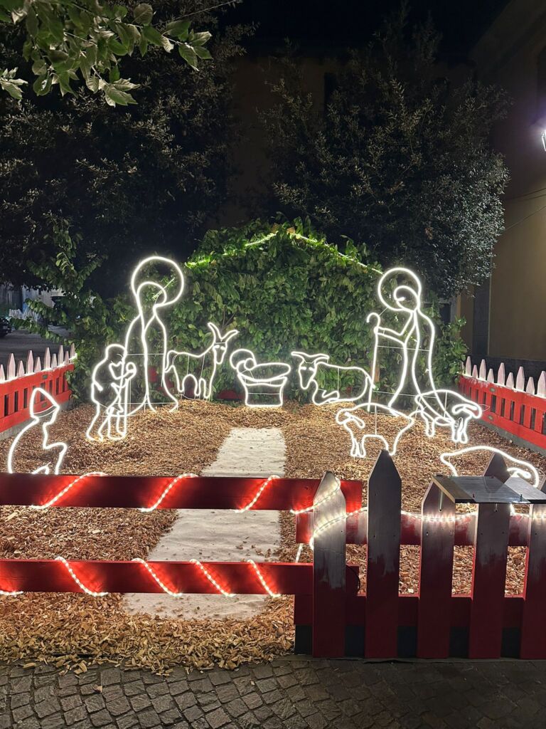 Il pomeriggio è entrato nel vivo con l’attesissimo spettacolo di ventriloquismo e magia, accolto con entusiasmo da bambini e famiglie. Momento particolarmente suggestivo, la proiezione artistica che ha illuminato la facciata della chiesa del Santissimo Crocifisso in Piazza Discacciati, destinata a rimanere visibile per tutto il periodo natalizio. Tra i presenti anche gli ospiti della RSA Emmaus, che hanno partecipato alla festa regalando un canto natalizio molto sentito.