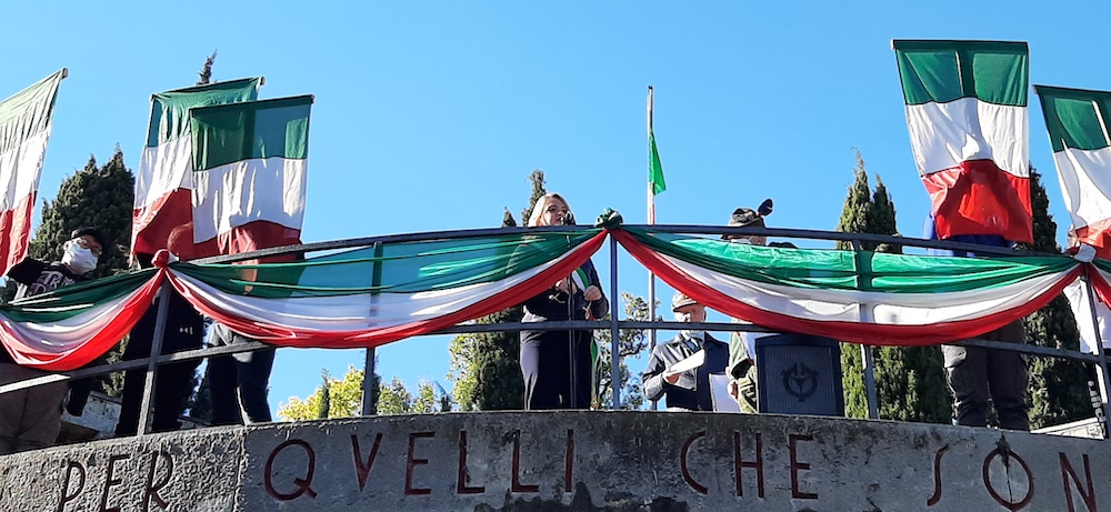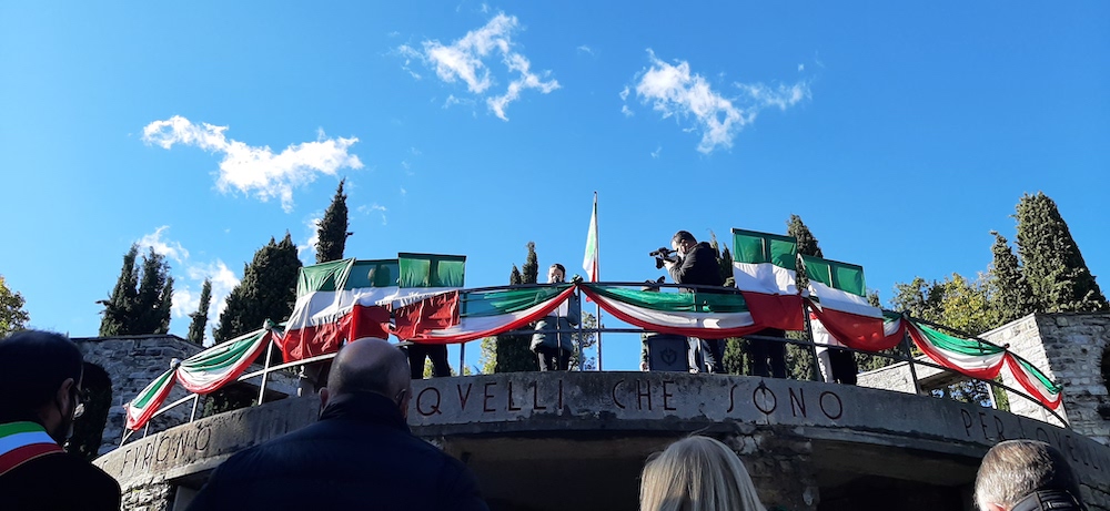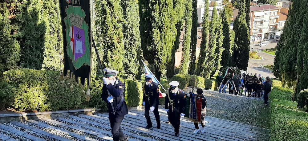Il sindaco ha ricordato la celebrazione del 4 novembre 1921, con la sepoltura della salma del Milite Ignoto al Vittoriano, evento centrale nella memoria collettiva, e ha ricordato gli eventi della grande guerra culminati con la vittoria, una storia importante di cui gli italiani vanno legittimamente fieri. Il sindaco ha reso omaggio alle Forze Armate, protagoniste allora del compimento del disegno risorgimentale e oggi del contributo fondamentale dato durante la pandemia senza risparmio di forze, esprimendo speciale riconoscenza per il Generale Figliuolo per la battaglia svolta contro il Covid. Sono stati ricordati i ragazzi del 1899, partiti appena diciottenni per il fronte guidati dagli ideali di Patria e Libertà.