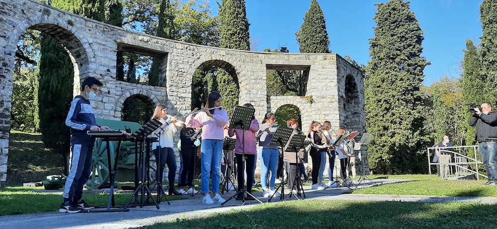 Il Presidente Emerito della Sezione ANA di Como, l’Alpino Achille Gregori, ha ricordato i fatti del 1921, la scelta della bara e il trasferimento in treno fino a Roma su un fusto di cannone, esortando i giovani ad amare la Patria e la Libertà. I ragazzi della Scuola Media “G. Puecher” hanno eseguito un brano musicale “Stelutis Alpinis” dedicato agli Alpini e ai valorosi combattenti della Grande Guerra.