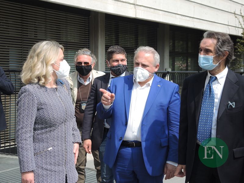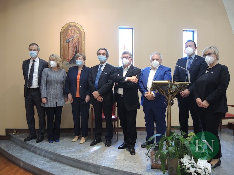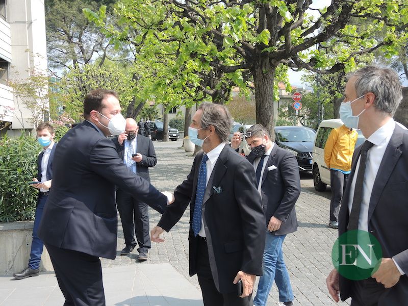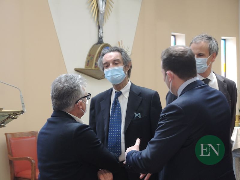 ERBA – Per il 90esimo di fondazione ha fatto tappa a Casa Prina anche il presidente di Regione Lombardia Attilio Fontana. Una visita ‘a sorpresa’, quella del Governatore lombardo, impegnato questa mattina nel tour degli Hub vaccinali massivi delle Province di Varese, Como e Lecco (qui l’articolo). Già sulla strada per Lariofiere, Fontana ha fatto una deviazione giungendo presso la casa di riposo erbese poco dopo le 12, accompagnato dal Sottosegretario Fabrizio Turba e dal Presidente del Consiglio Comunale Alessandro Fermi.