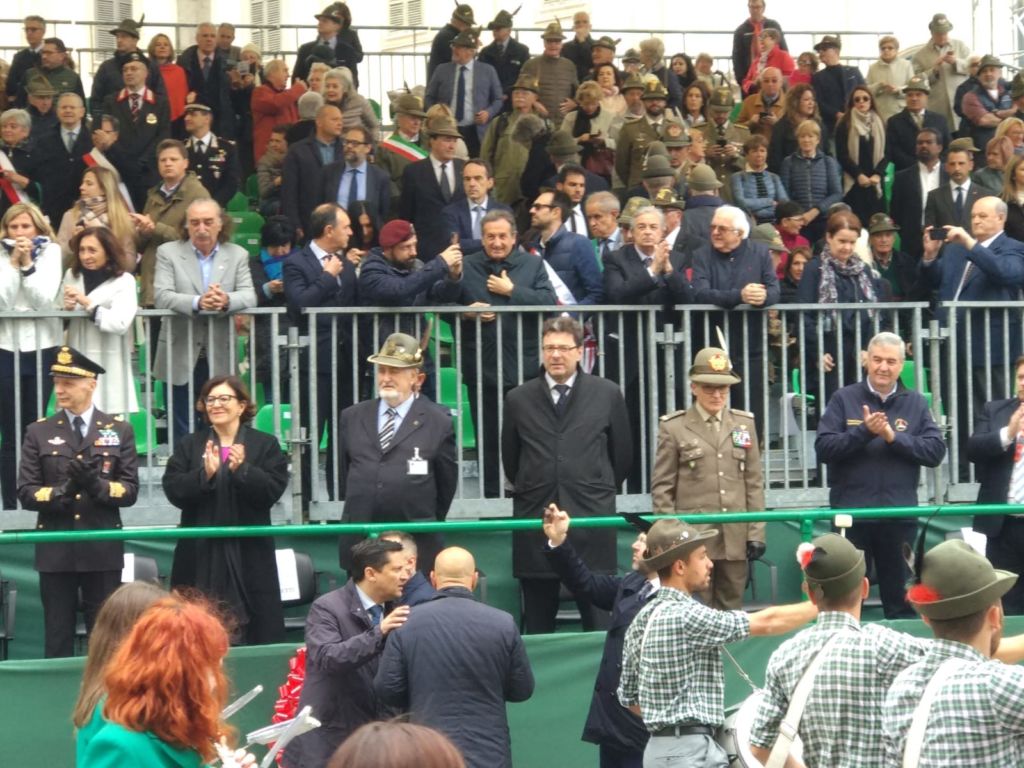 “Cento anni di coraggio e impegno” come recita lo striscione portato alla testa della parata iniziata dalle 9 delle mattina e che è proseguita fino a sera con la sfilata di tutti i partecipanti a partire dalla Fanfara e i reparti alpini di formazione, i decorati e