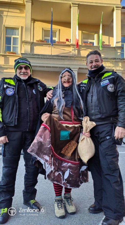 ALBAVILLA – La Befana ha concesso il ‘bis’ ad Albavilla. Dopo l’oramai tradizionale ‘tour’ del paese in sella alle rombanti Harley Davidson, la vecchina (impersonata dall’assessore ai Servizi Sociali Angela Bartesaghi) nella giornata di ieri, martedì, ha fatto visita ai bimbi dell’Asilo di Carcano e di Giobbia portando sorrisi e dolci per tutti.