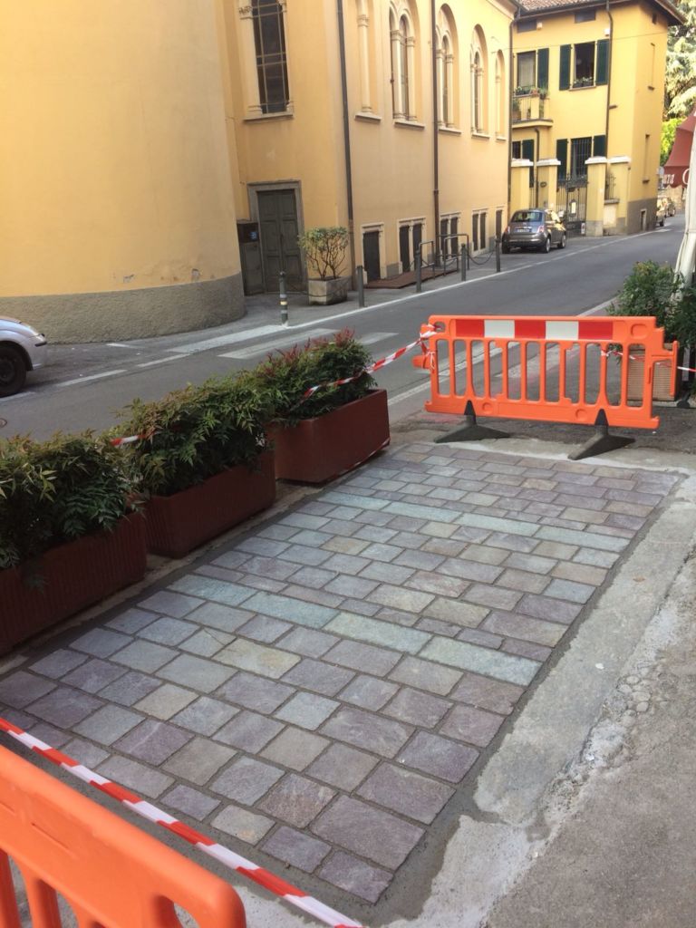“Siamo partiti con la dismissione della pesa e la messa in sicurezza dell’area, dopo di che siamo passati alla riqualificazione dell’area attraverso la posa di una pavimentazione di due diverse pietre, porfido e luserna. Il disegno della pavimentazione – ha dichiarato Ballabio – ricalca la trama storica della vecchia piattaforma”. Il costo dell’intervento è stato stimato intorno ai 3 mila euro.