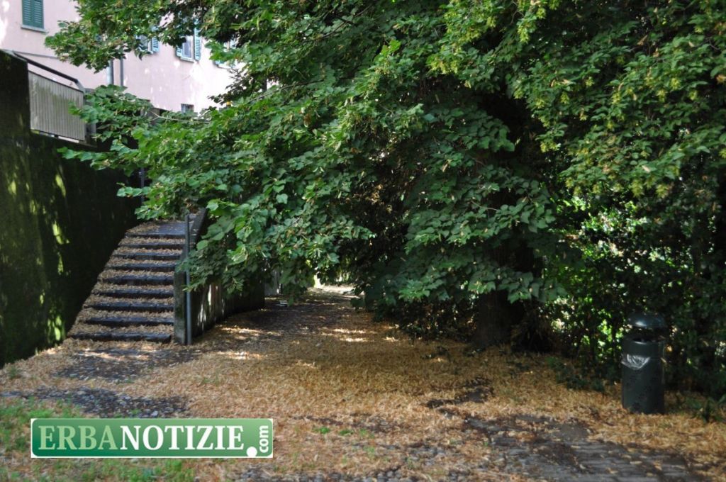 ALZATE BRIANZA – Un grande prato verde ben curato, giostre per bambini integre e ordinate, un bar accogliente: è questa la prima immagine del parco comunale di Alzate Brianza. Ma la situazione cambia radicalmente addentrandosi nell’area dove una vegetazione di alberi e erbe fuori controllo occupa spazi e sentieri, oscurando e rovinando anche le strutture in pietra.