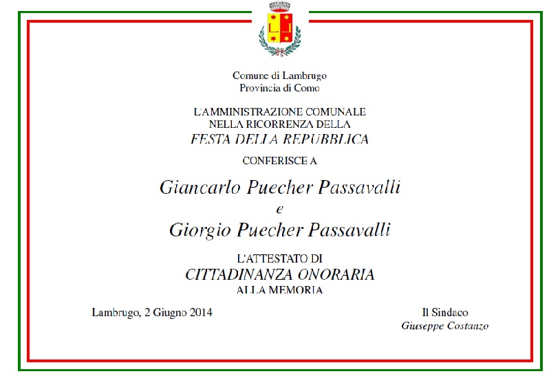 Cittadinanza Puecher Lambrugo 2 giugno 2014 (pergamena)