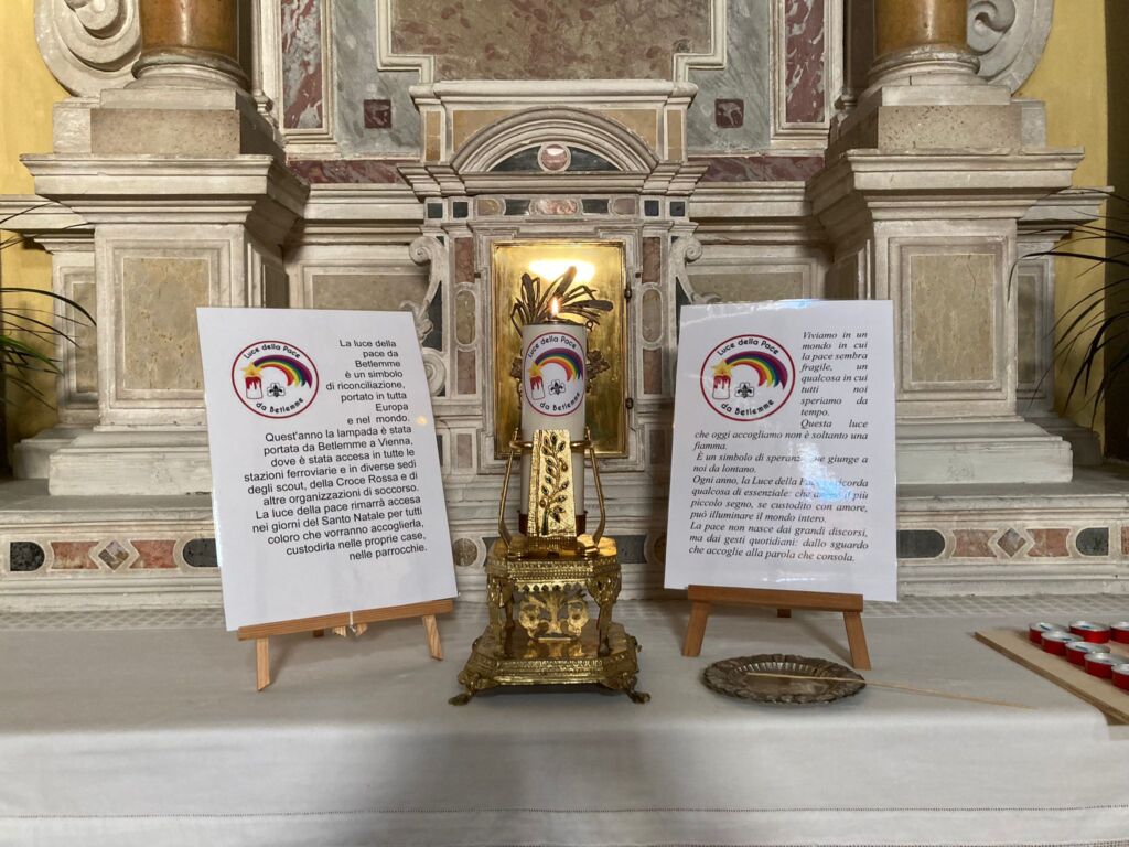 Da sabato 13 dicembre «Crevenna Borgo dei Presepi» è anche la “casa” della Luce della Pace. Come già lo scorso anno, la parrocchia di Santa Maria Maddalena ha accolto la fiammella accesa dalla lampada custodita nella Basilica della Natività di Betlemme, il cui olio è alimentato a turno dai Paesi cristiani del mondo. La Luce era stata accesa il 7 novembre scorso dal Patriarca di Terra Santa, cardinale Pierbattista Pizzaballa. Lo stesso giorno era giunta a Vienna e il 6 dicembre era stata benedetta nella Cattedrale di Linz e donata ai rappresentanti dei diversi Paesi europei: la luce destinata all’Italia era stata accesa da un bambino di nome Florian.
