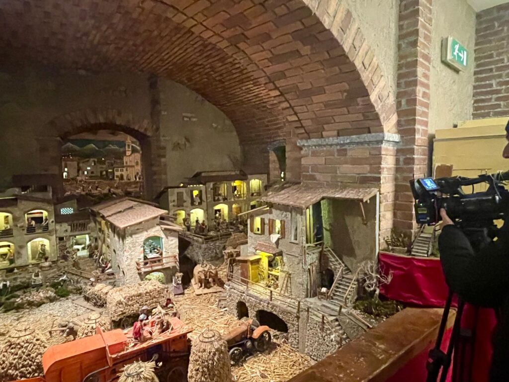 ERBA – Anche la Rai racconta «Crevenna Borgo dei Presepi». Nel pomeriggio di domenica 14 dicembre una prestigiosa visita ha gratificato il lavoro di mesi degli Artigiani del Presepe guidati da Angelo Garofoli. Una troupe del servizio pubblico con la giornalista del Tgr Donatella Negri è giunta nella frazione per documentare gli allestimenti inaugurati nei giorni scorsi: il Presepe in movimento di Villa Ceriani e «La più grande storia mai raccontata» sul sagrato della chiesa di Santa Maria Maddalena. Ad accogliere la troupe il vicario parrocchiale don Ettore Dubini e lo stesso Garofoli, che hanno illustrato origine, contenuti e significato dei due manufatti. Nell’arco di poco meno di due ore Donatella Negri ha raccolto poi ulteriori testimonianze tra i volontari e i visitatori. Il servizio andrà in onda nei prossimi giorni.