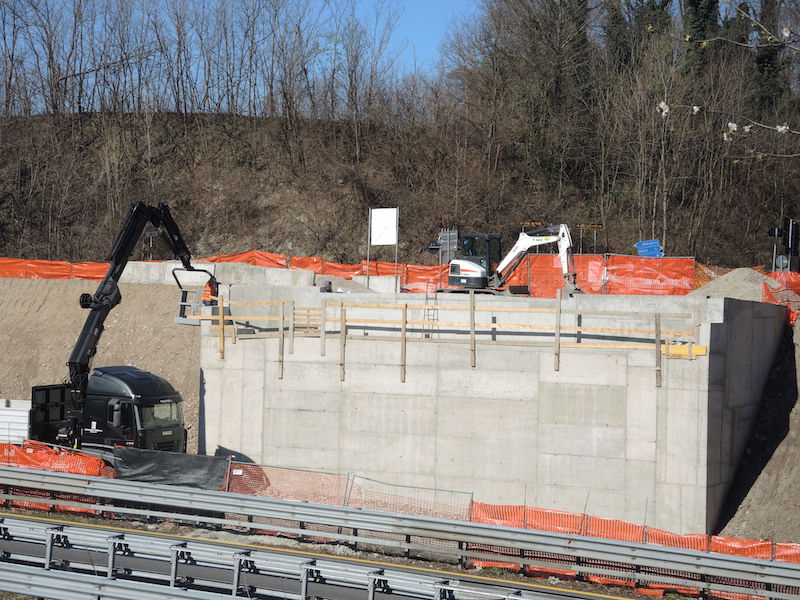 Il materiale è stato scaricato nella piazzola di sosta a circa cento metri dal cantiere del nuovo cavalcavia, già designata a tale scopo nelle settimane precedenti. Lì sarà assemblato per comporre le due grandi travi di sostegno del ponte. Questo compito è affidato alla Carpenteria Mazzoleni Carlo di Sorico che sta per iniziare la fase di montaggio.