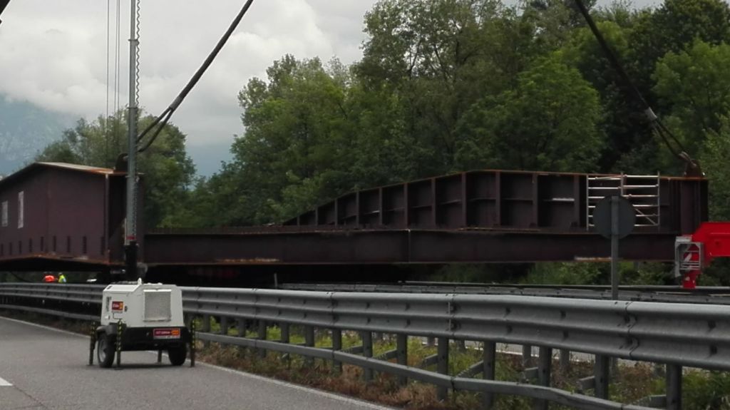 Dall’area di sosta, l’impalcato è stato caricato sui carrelli di due camion posizionati sulle due carreggiate e spostato a ‘cavallo’ del guardrail verso l’area del cantiere. Le operazioni sono proseguite fino all’alba di questa mattina.