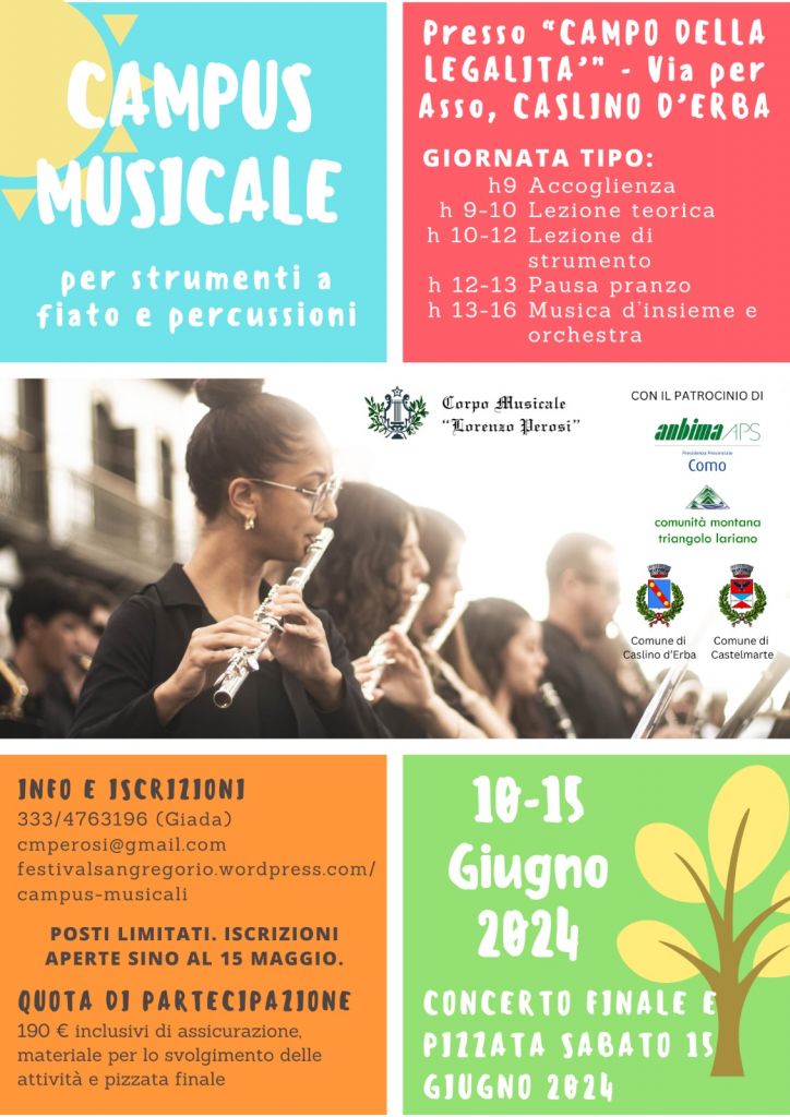 CASLINO D’ERBA – Sono aperte le iscrizioni al Campus Musicale di giugno organizzato dal Corpo Musicale “Lorenzo Perosi”.