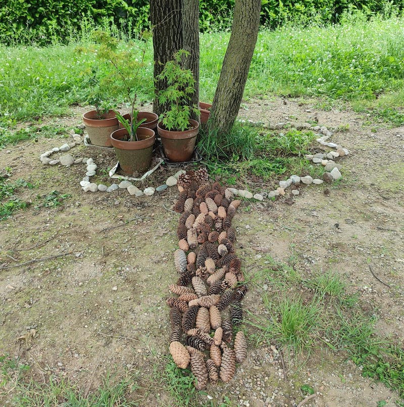 Ed infine i bambini suddivisi in piccoli gruppi hanno realizzato opere inserite nell’ambiente, utilizzando in modo creativo spazi e materiali trovati in natura, seguendo l’insegnamento di Long e della “land art”.