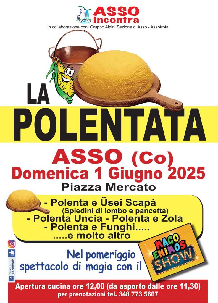 Sabato sera sarà dedicato al calcio e alla finale di Champions League tra Inter e PSG trasmessa su maxi-schermo, nel frattempo la cucina sarà aperta dalle ora 19 con salamelle, patatine e birra. Domenica a pranzo, invece, il menù prevede la polenta da degustare in varie versioni: polenta e usei scapà (spiedini di lombo e pancetta), polenta uncia, polenta e zola e molto altro. Ci sarà anche la possibilità d’asporto dalle 11.30, mentre chi preferisce mangiare sul posto la cucina apre alle 12.