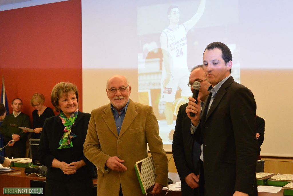 Giacomo Bloise: ha ritirato il premio il papà che ha consegnato anche una maglia di Giacomo al sindaco con tanto di dedica “A Erba, la mia città, con affetto”.