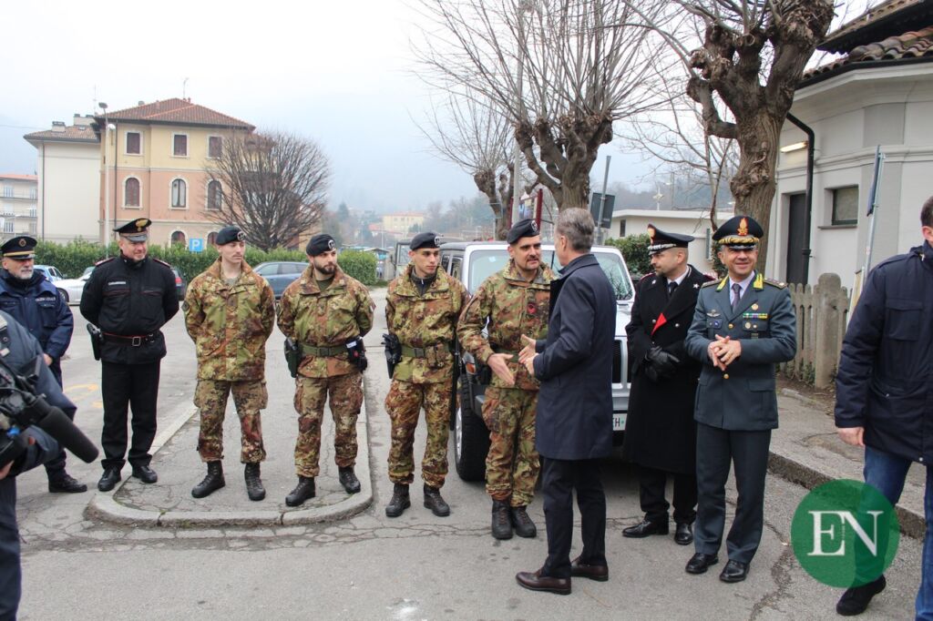 CANZO/ASSO – A partire da oggi la stazione di Canzo-Asso sarà presidiata dai militari dell’Operazione Strade Sicure che opereranno in maniera integrata sul territorio insieme alla Polizia Locale e all’Arma dei Carabinieri. I due primi cittadini di Canzo, Giulio Nava, e di Asso, Mirko Donadini Pina hanno accolto i tre nuovi soldati dell’Esercito Italiano, i rappresentanti delle Forze Armate e delle istituzioni. Tra cui il deputato erbese e propulsore dell’iniziativa, Eugenio Zoffili, il sottosegretario al Ministero dell’interno, Nicola Molteni, il Prefetto di Como Corrado Conforto Galli e il neo Questore Filippo Ferri.