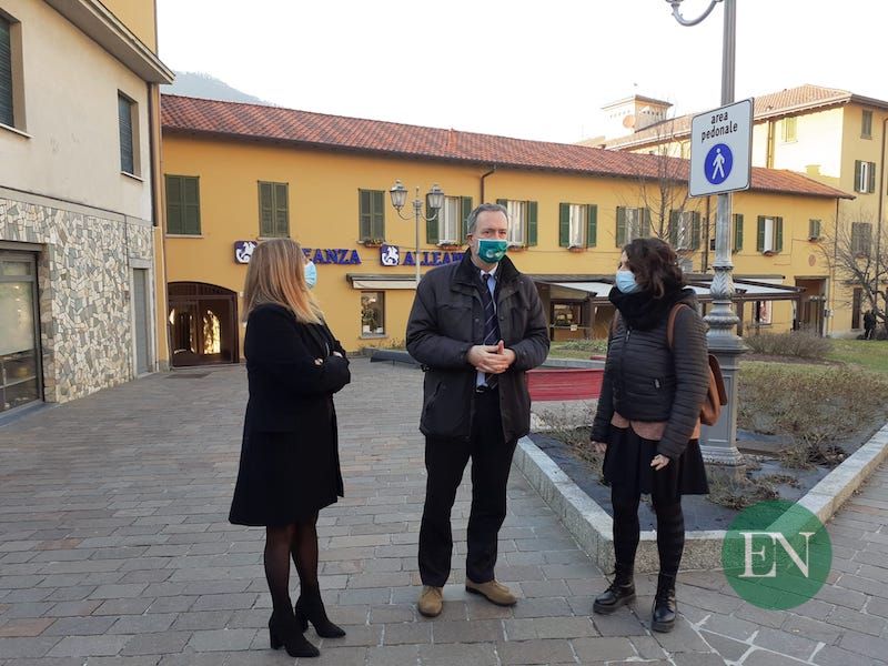 Da sinistra: Melissa Sacchi di Canzo Oltre Le Vetrine, Claudio Casartelli di Confesercenti Como e l’assessore Laura Ferrari