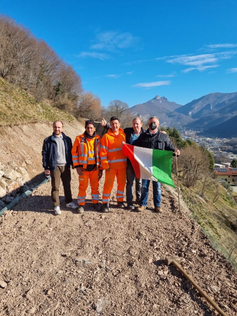 Dopo alcuni mesi di lavoro, l’intervento, che ha portato all’edificazione del vallo in terra armata e al posizionamento delle reti paramassi, è stato concluso lo scorso sabato quando simbolicamente il sindaco Marcello Pontiggia e il vicesindaco Marco Colombo hanno issato il tricolore insieme agli addetti ai lavori.