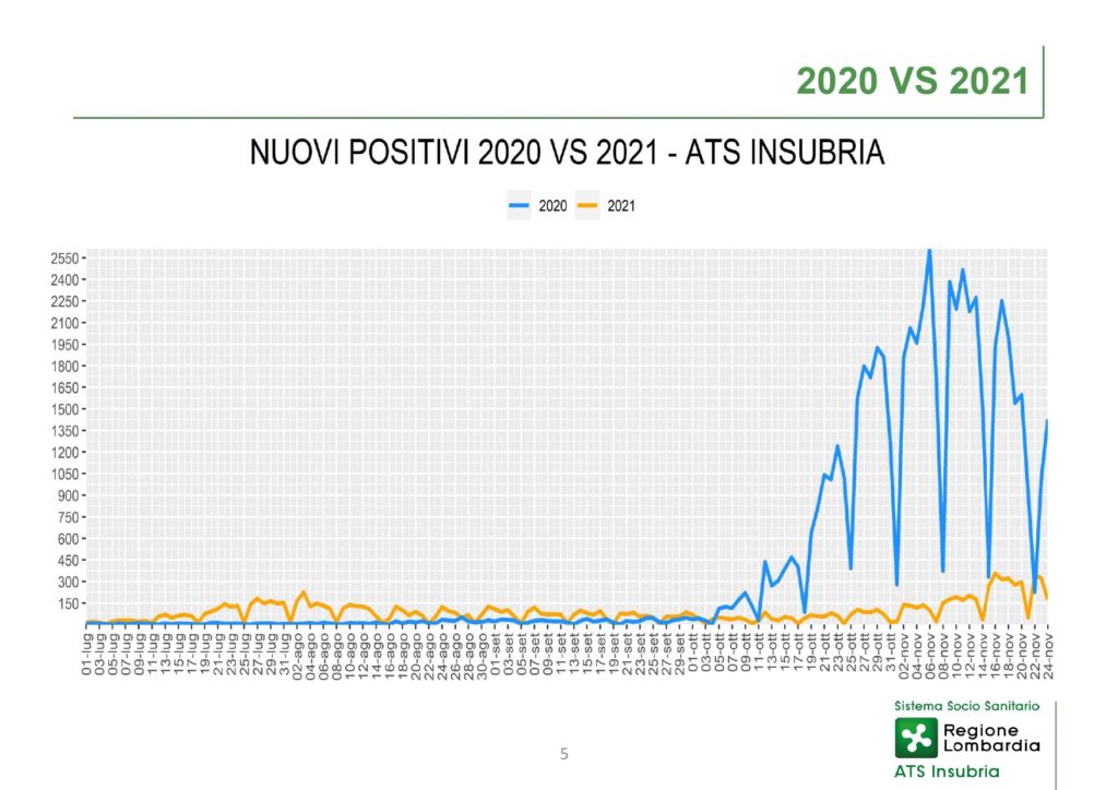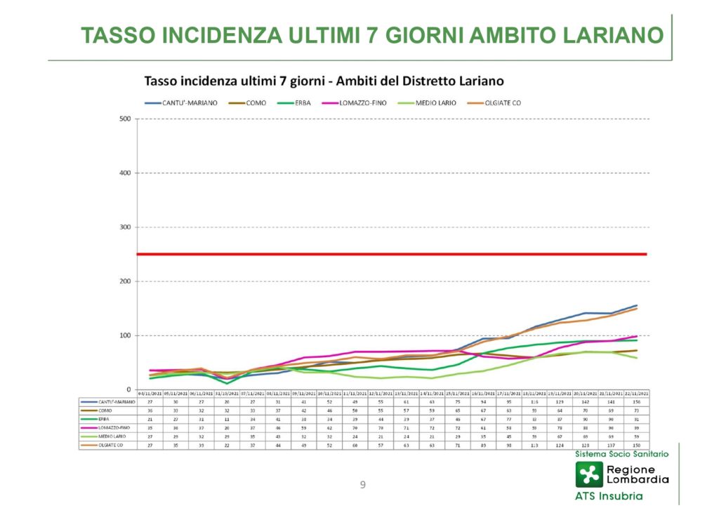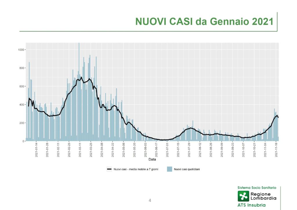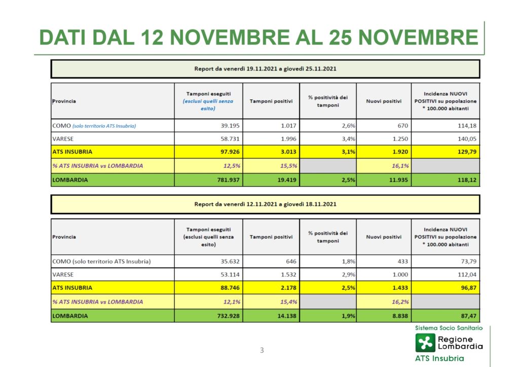 ERBA – Sono 670 i nuovi positivi della settimana dal 19 al 25 novembre nella provincia di Como gestita da Ats Insubria, numeri che confermano il rialzo dei contagi in Regione come in Italia e in Europa.