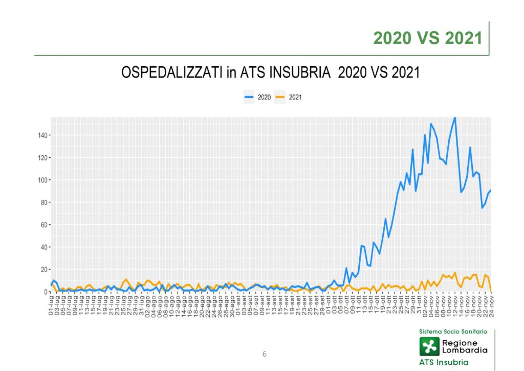 Facendo un confronto con la settimana dal 12 al 18 novembre, si può notare che su 35.632 tamponi eseguiti, 433 sono stati i nuovi positivi con una percentuale di positività a 1,8%. I numeri, sebbene in rialzo, restano ben al di sotto di quelli che venivano registrati nello stesso periodo nel 2020, sia nei nuovi contagi sia nelle ospedalizzazioni.