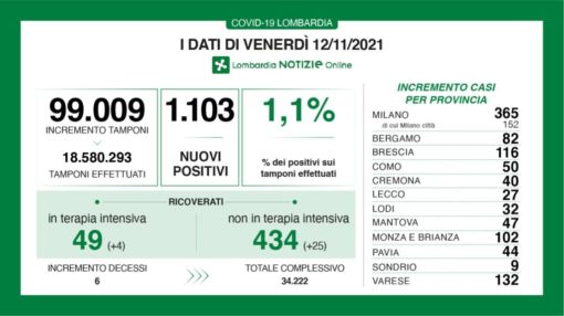 ERBA – A fronte di 99.009 tamponi effettuati, sono 1.103 i nuovi positivi (1,1%).