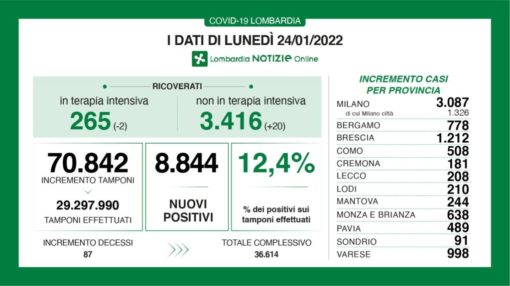 COMO – Continuano a diminuire i ricoverati nelle terapie intensive (-2). A fronte di 70.842 tamponi effettuati, sono 8.844 i nuovi positivi (12,4%).