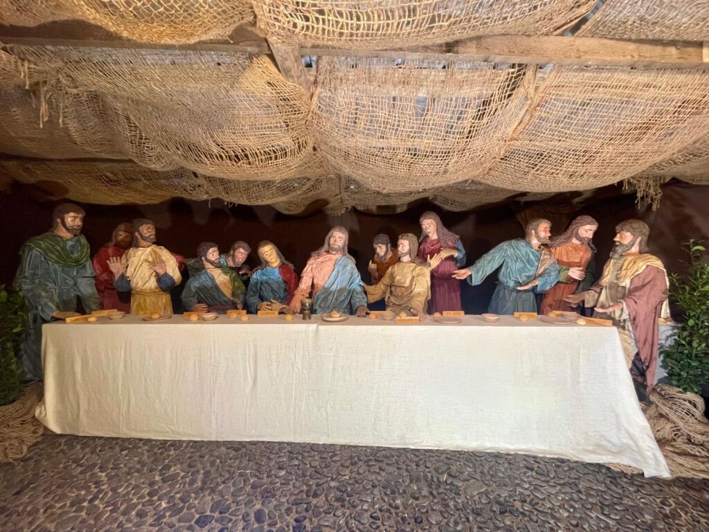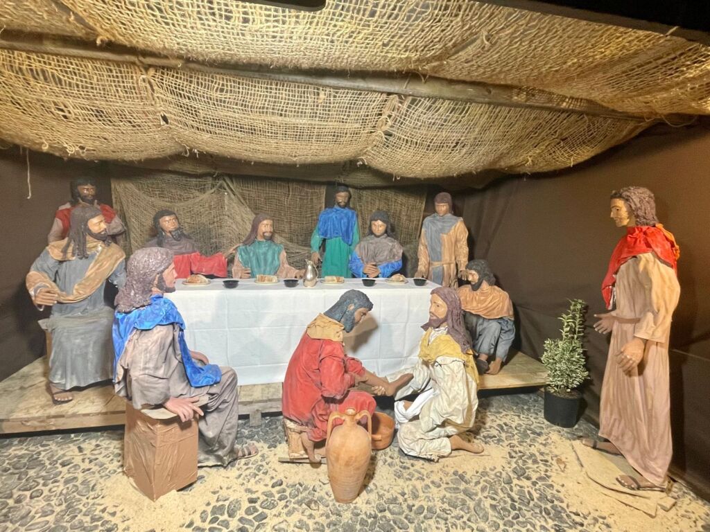 L’Ultima Cena è una trasposizione tridimensionale del Cenacolo di Leonardo. “È l’Eucaristia che fa la comunità – sottolinea don Ettore –. È ancora l’Eucaristia a tenere vive le parrocchie”. Sulla Lavanda dei Piedi il parroco aggiunge: “Gesù lava i piedi ai discepoli e dice loro: ‘Avete visto cosa ho fatto? Bene, come io vi ho lavato i piedi, ora lavateli anche voi, l’un l’altro’. Come a dire, mettete la vostra vita a servizio degli altri. È un richiamo a vivere la propria esistenza come dono e servizio, l’espressione più bella della vita cristiana, particolarmente significativa nella nostra comunità, dove è attivo un considerevole numero di volontari”.