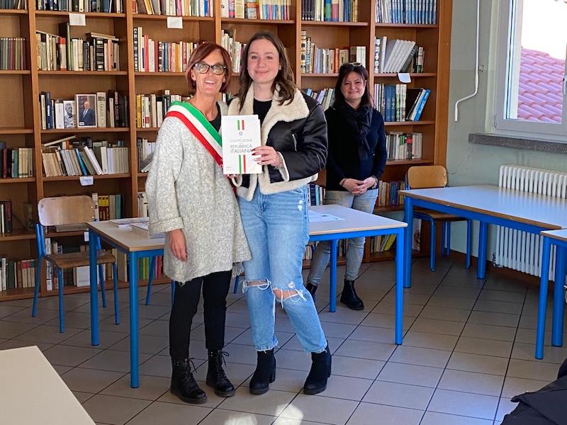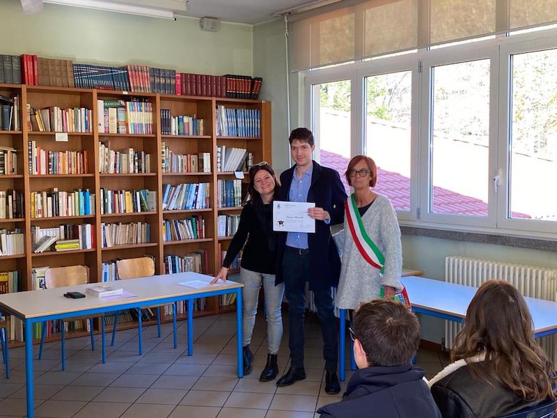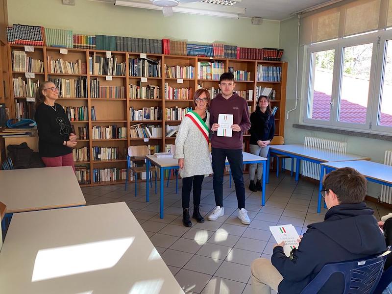 Dopo la consegna della Costituzione il sindaco ha premiato il miglior laureato dell’anno con il Premio Scalise, assegnato a Francesco Moscatelli, 110 e lode in scienze dell’economia.
