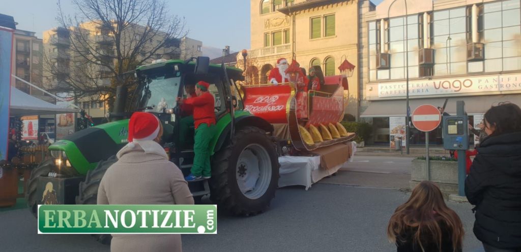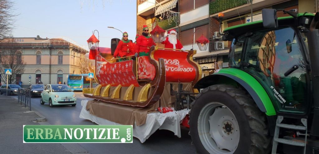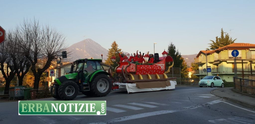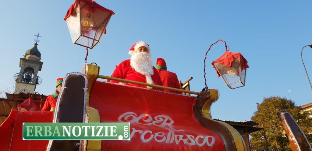 ERBA – Babbo Natale e i suoi elfi sono scesi tra le vie di Erba su una grande slitta rossa. Nata dall’idea di un gruppo di papà dell’Oratorio Cristo Re di Arcellasco, l’iniziativa si è svolta questo pomeriggio, sabato.