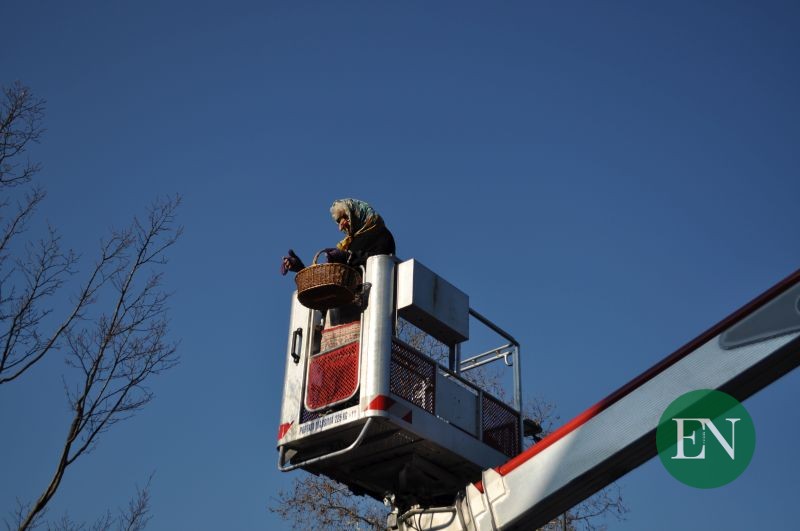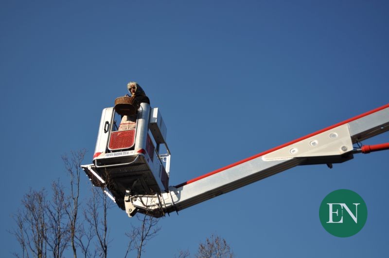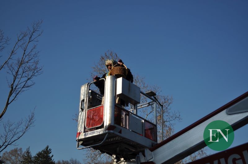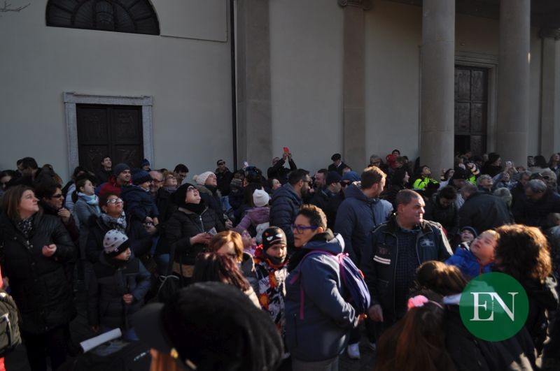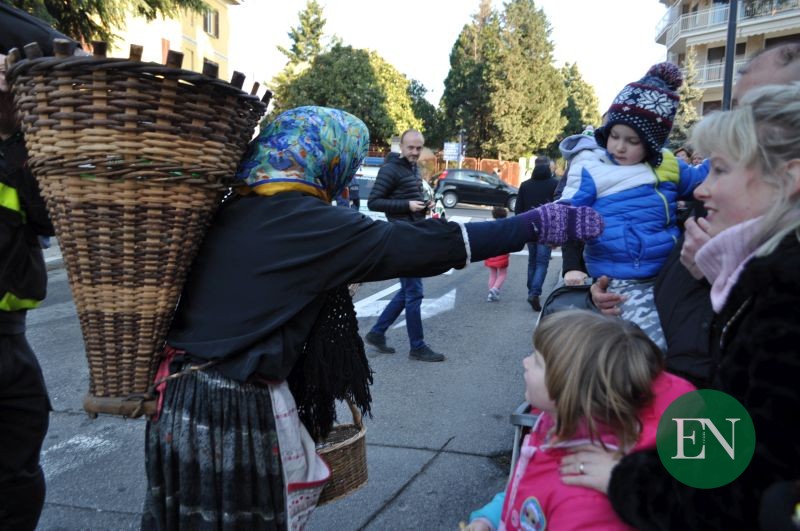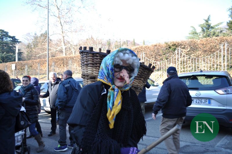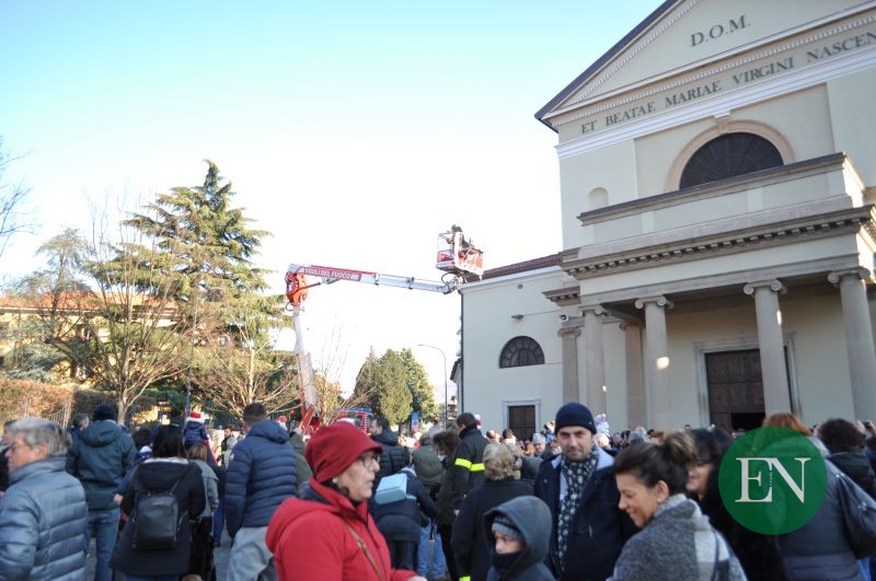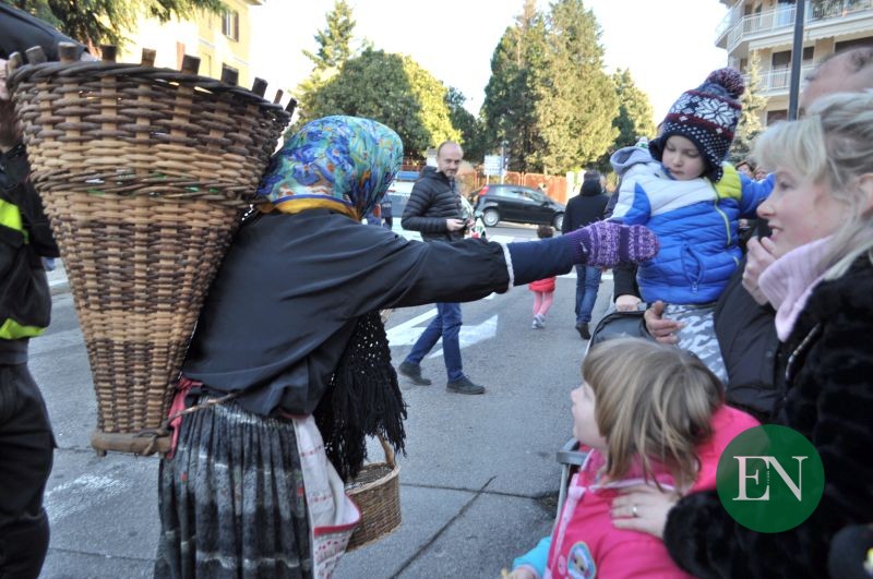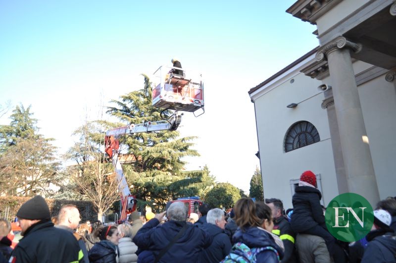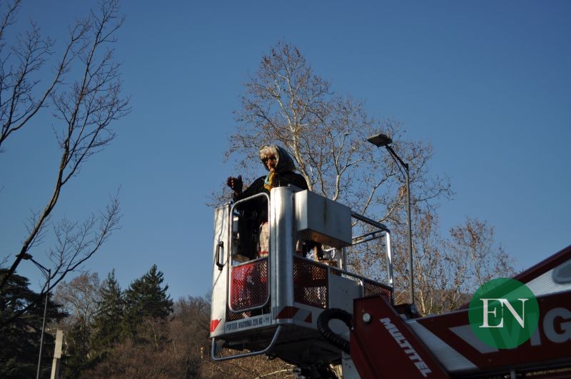 Al termine della messa delle ore 10, tutti sulla Piazza della Prepositura a naso in su: come vuole infatti la tradizione erbese, la simpatica vecchina è salita sul cestello elevatore dei pompieri per distribuire a tutti i presenti dolciumi e caramelle.