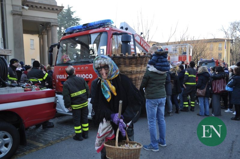 ERBA – “La Befana vien di notte, con le scarpe tutte rotte e…a bordo dei mezzi dei Vigili del Fuoco!”. Davvero in tantissimi, grandi e piccini, hanno partecipato questa mattina, lunedì dell’Epifania, al tradizionale corteo della Befana, organizzato dai Vigili del Fuoco del Distaccamento di Erba.
