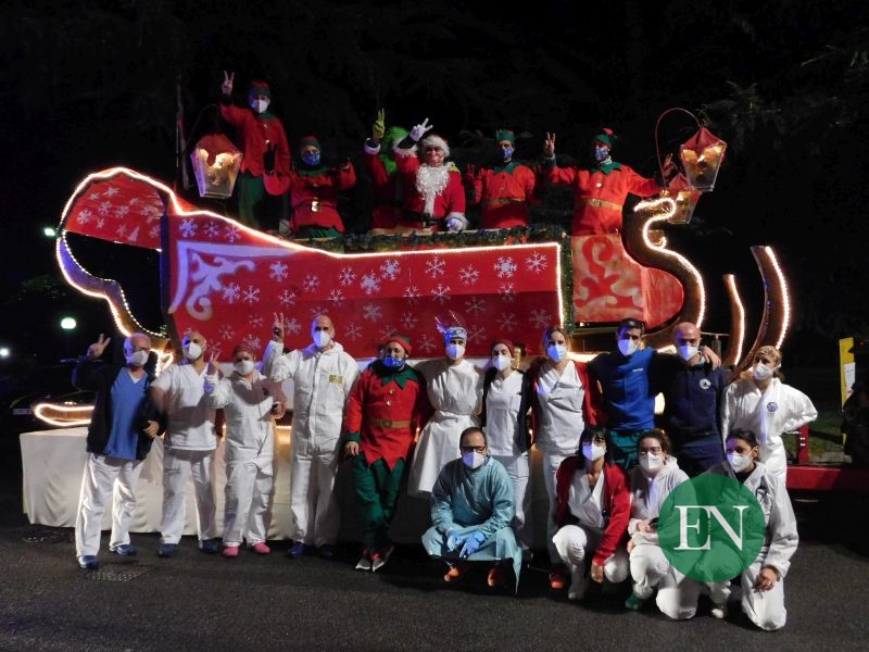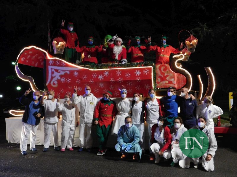 Originariamente prevista per la Vigilia, l’iniziativa è stata anticipata a ieri a causa delle ultimi disposizioni per il contenimento del contagio. Per l’occasione, quindi, la slitta di Babbo Natale e degli elfi delle associazioni Amici di Carola e Salta Ancora Nicolò ha sostato per alcuni minuti all’esterno di Ca’ Prina e dell’ospedale per portare a medici, infermieri, operatori e pazienti gli auguri della città.