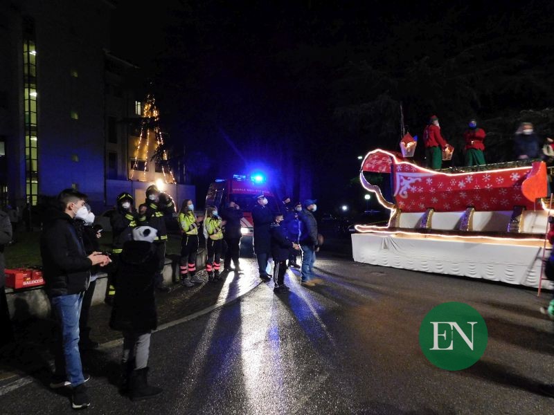 ERBA – La magia del Natale non conosce limiti e supera qualsiasi ostacolo. Ed è proprio quello che è avvenuto ieri sera, sabato, quando la slitta di Babbo Natale è arrivata all’esterno di Ca’ Prina e dell’ospedale Fatebenefratelli per portare gli auguri della città.