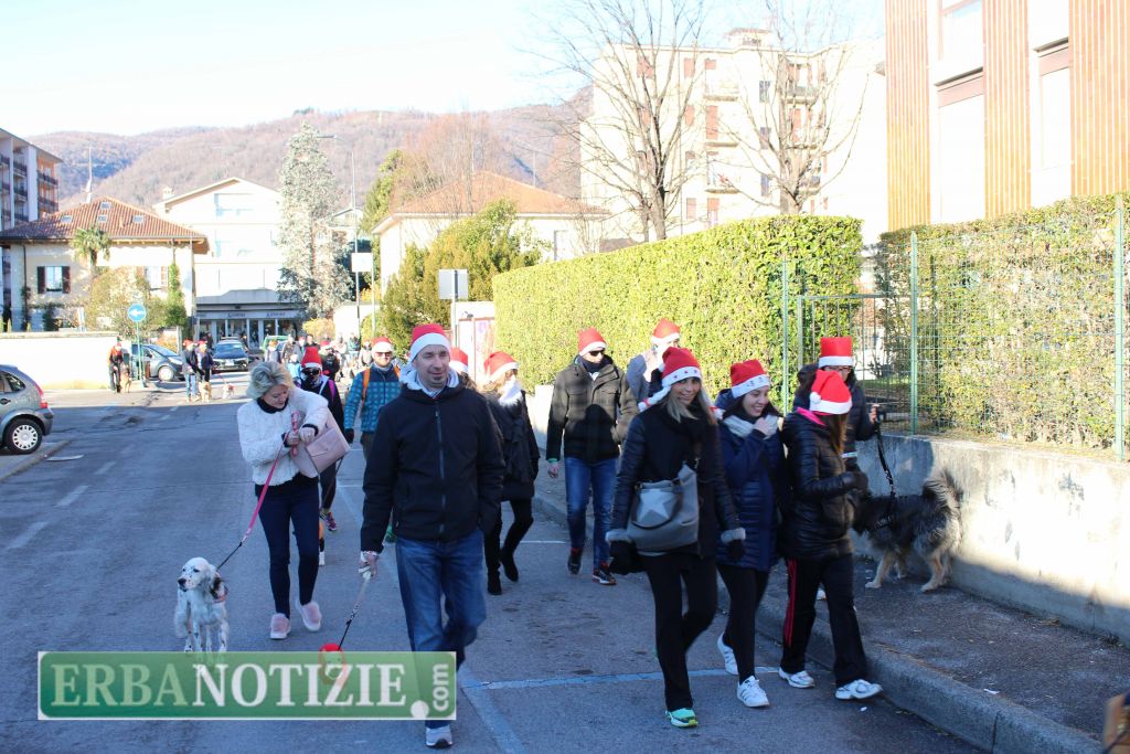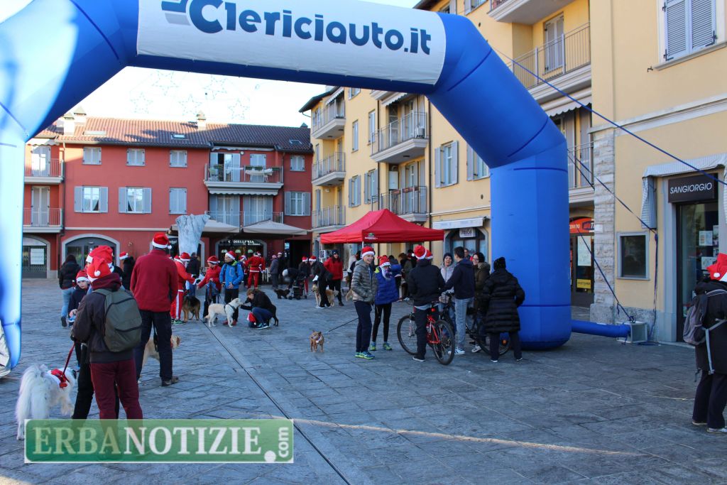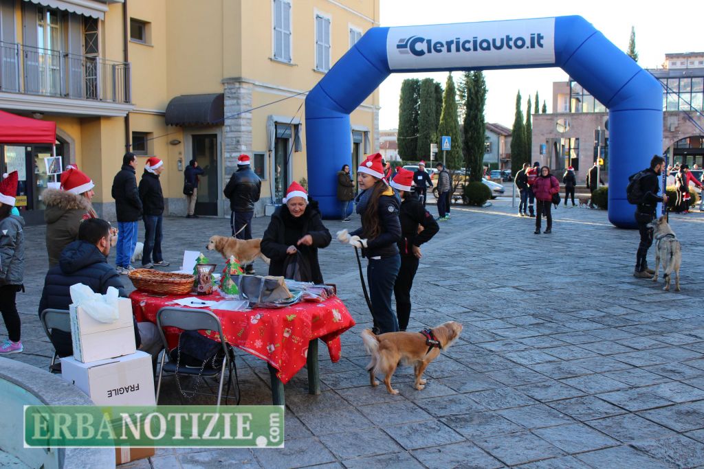 ERBA – Nella mattinata di domenica 17 dicembre a Erba si è svolta per la prima volta a Erba la “Babbo&Dog Running”, manifestazione podistica rivolta agli appassionati corridori e agli amatori di tutte le età che, vestiti da Babbo Natale, insieme o meno ai loro amici a quattro zampe hanno corso per le vie della città con lo scopo anche di contribuire a sostenere le iniziative dell’associazione “Gli Amici del Randagio Onlus – Canile di Erba”.