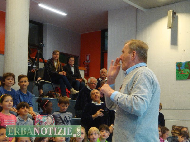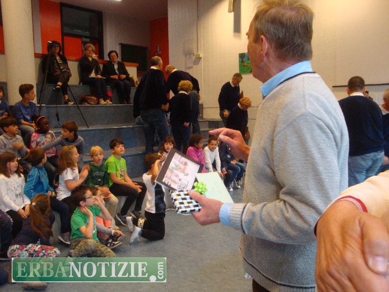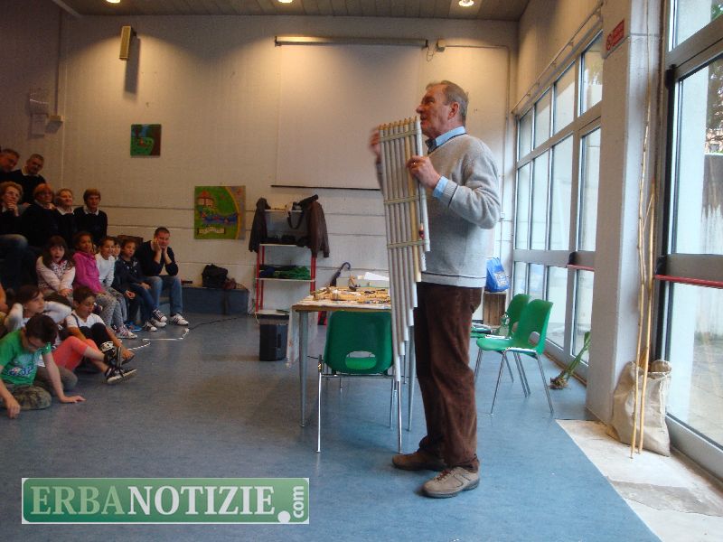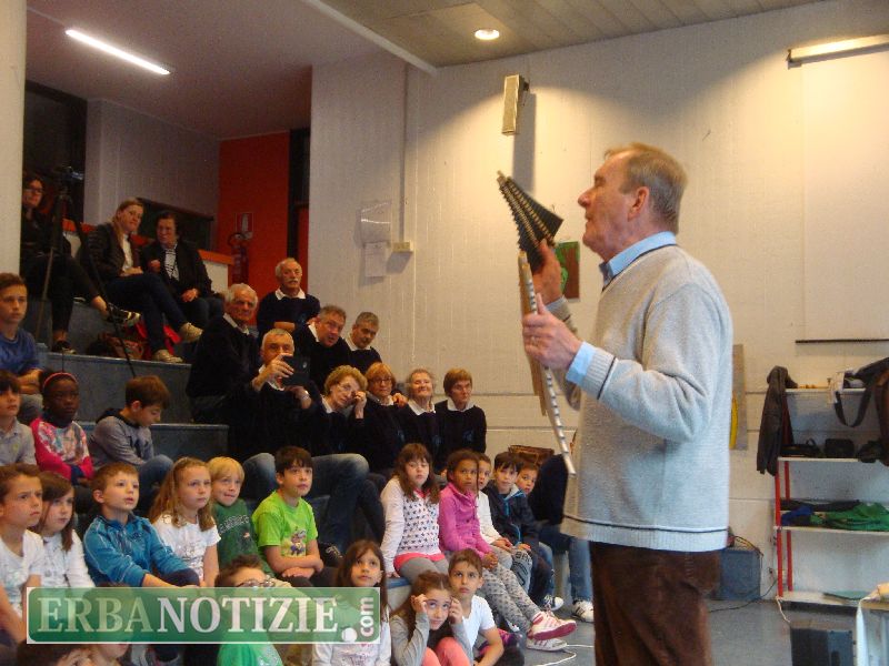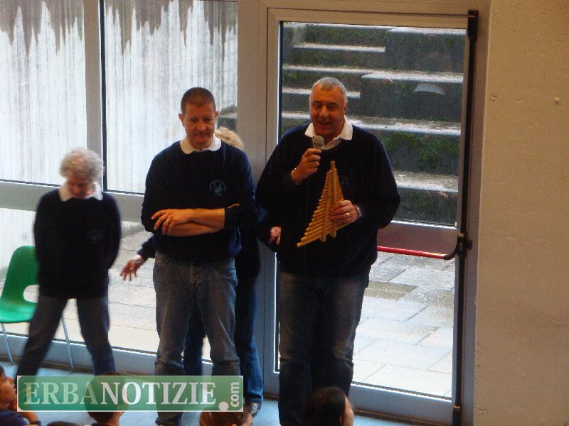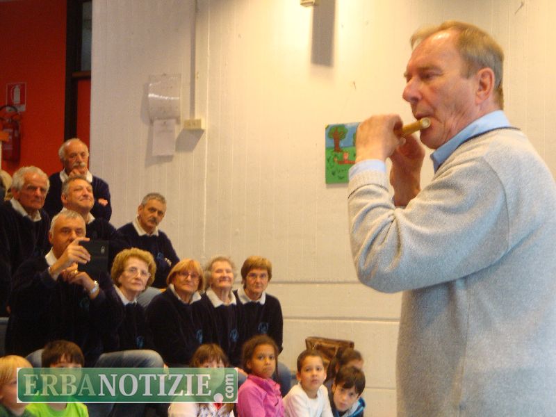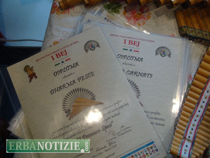 ERBA – Il Maestro Vittorio “Rino” Pozzi, eccelso costruttore di flauti di Pan di Bottanugo (Bg) e Angelo Molinari, presidente del gruppo folcloristico I Bej di Erba, stamattina, lunedì, alla scuola primaria “C. Battisti” hanno premiato con la consegna dei ‘diplomi’ gli alunni delle classi quinte con i quali hanno realizzato lo spettacolo “I Promessi Sposi”, spettacolo con il quale hanno vinto il concorso provinciale Opera Domani e messo in scena al teatro Excelsior di Erba ad aprile e al teatro sociale di Como a maggio.