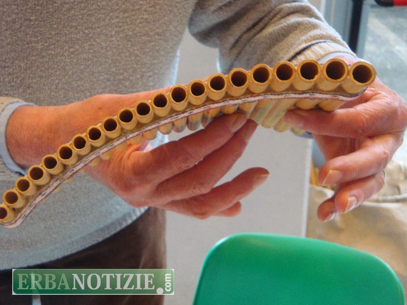 Tanti poi i riusi con gli scarti di lavorazione del flauto di Pan che il Maestro Pozzi ha mostrato ai ragazzi: dal semplice fischietto di richiamo, utile ai cacciatori, fatto con un piccolo pezzetto di canna dal taglio a becco con in mezzo della plastica anch’essa da recupero, piuttosto che flauti e flauti traversi. “Io non conoscono la musica, ma ho imparato a suonare il flauto di Pan proprio suonandolo e ascoltandolo – ha voluto sottolineare il Maestro, ricordando come basti veramente poco per suonarlo, – E’ tutta una questione di amore e impegno“.