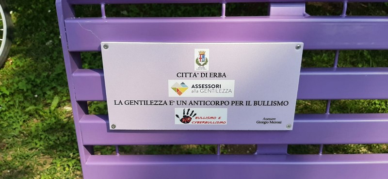 ERBA – Il sindaco di Erba Veronica Airoldi e l’Assessore alla Gentilezza Giorgio Meroni hanno inaugurato questa mattina, 29 maggio, al parco Majnoni, due nuove panchine, una di colore rosso e l’altra viola. Ormai da qualche settimana le panchine sono posizionate intorno all’area giochi per i bambini, e simboleggiano rispettivamente la lotta contro la violenza sulle donne e la gentilezza contro il bullismo.