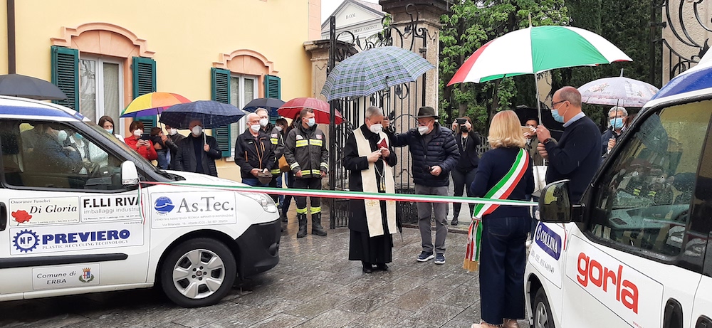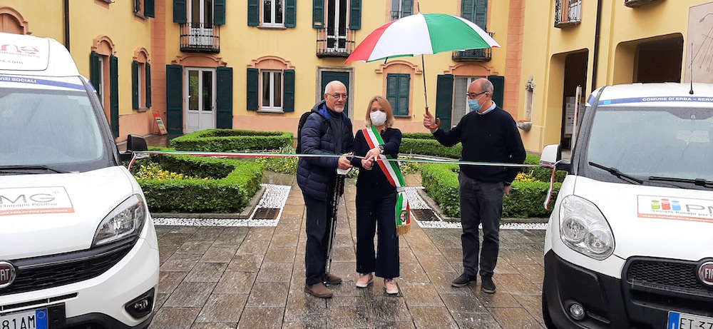 La cerimonia di inaugurazione si è tenuta nel cortiletto di ingresso della Sede Comunale, alla presenza di Monsignor Pirovano che ha benedetto i mezzi prima del taglio dei nastro, del Sindaco Veronica Airoldi, che ha ringraziato i rappresentanti di PMG e ha consegnato un attestato di riconoscenza agli sponsor che hanno contribuito al progetto.