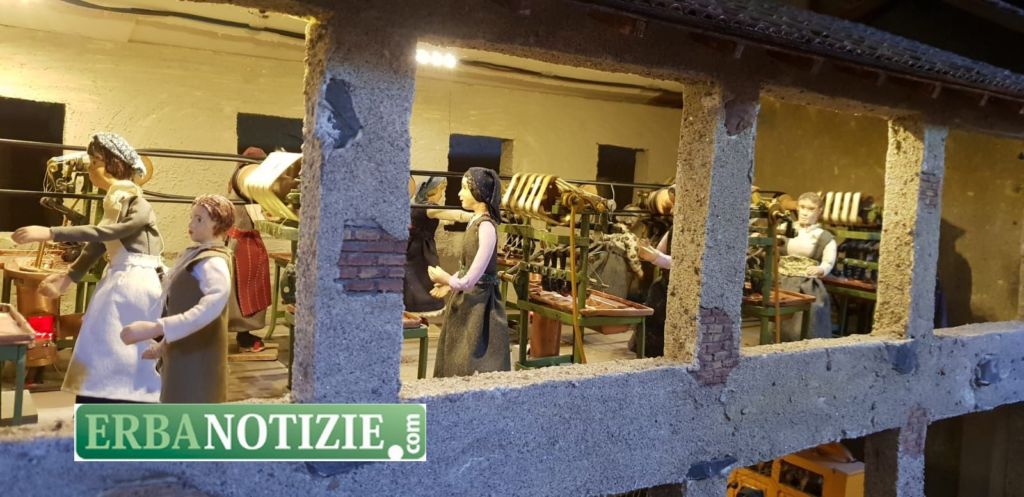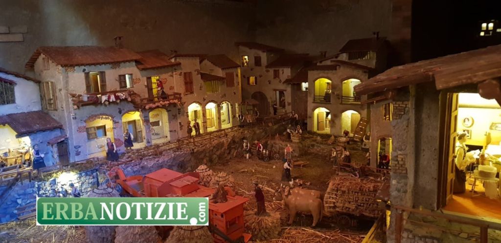 Il tipico paesaggio brianzolo fatto di cortili, cascine e laboratori incornicia la natività mentre, instancabili, le piccole statuine mostrano uomini, donne e bambini impegnati nelle loro occupazioni: gli opifici, le filande, il lavoro nei campi, le botteghe, la scuola e le case. Ogni anno vengono aggiunti particolari nuovi e perfezionati quelli già esistenti in modo che il presepe non sia mai lo stesso.