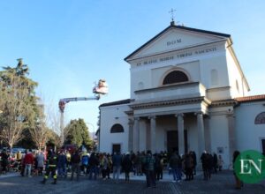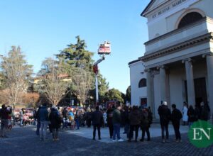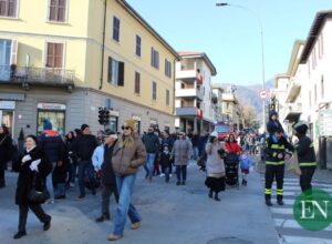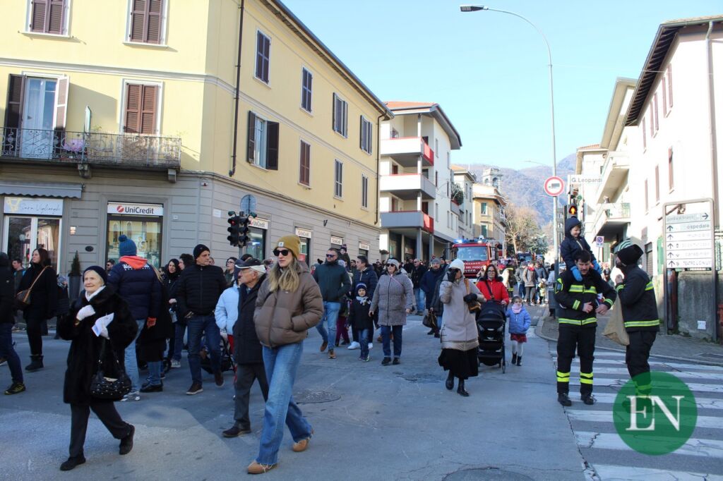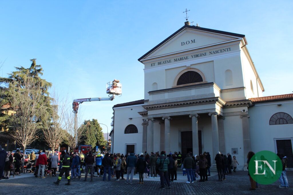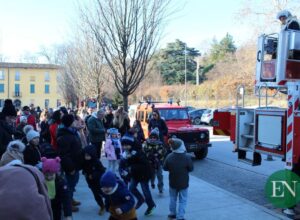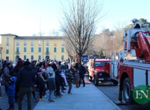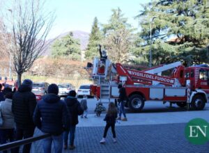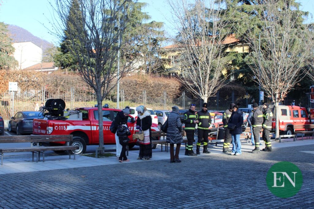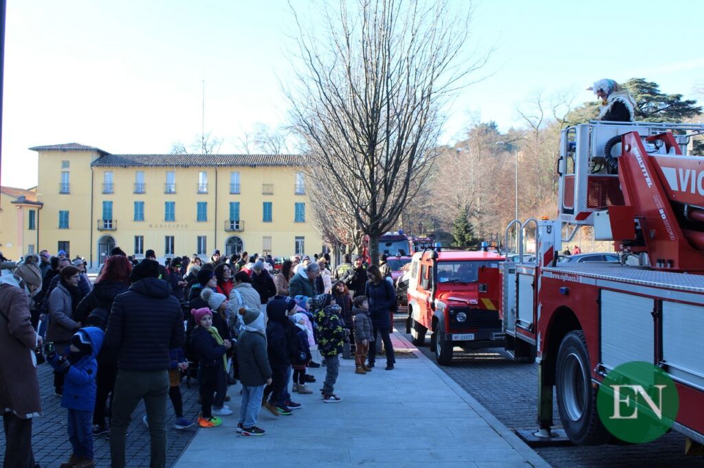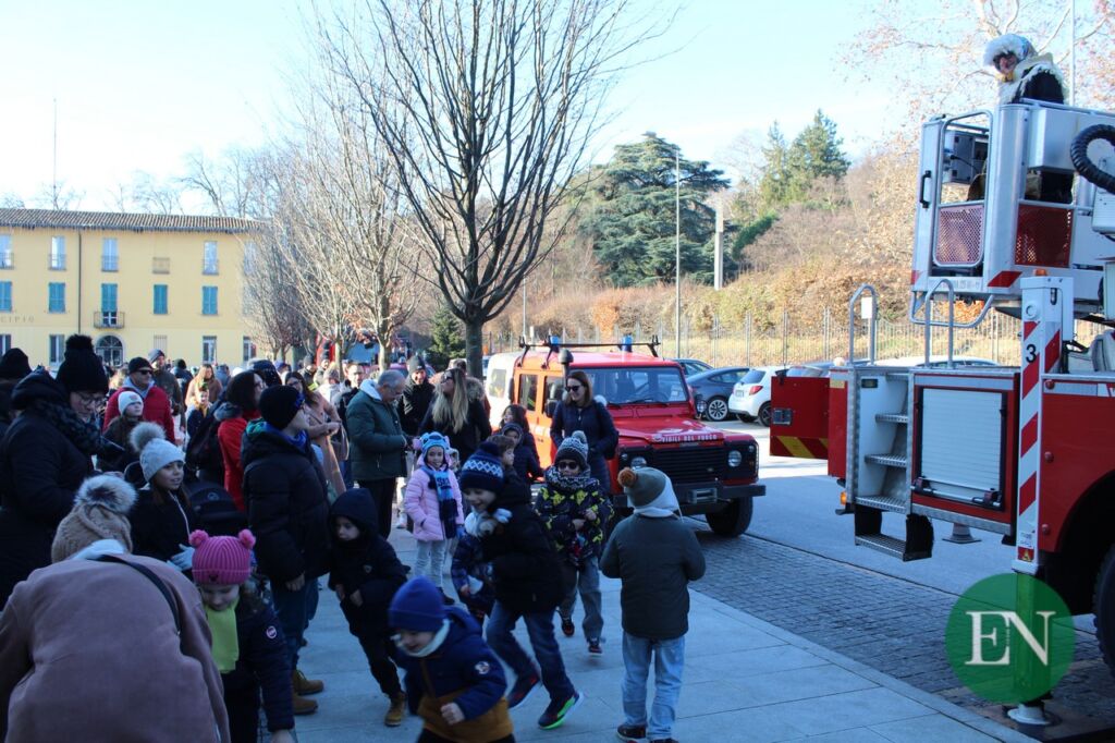 ERBA – Grande entusiasmo per il consueto appuntamento in piazza con la Befana dei Vigili del Fuoco di Erba che come da tradizione, con le calze tutte e col cappello alla romana a bordo della sua scopa, ha distribuito dolcetti e caramelle ai bambini presenti in piazza Prepositurale. Prima ad altezza uomo e poi è salita cielo grazie all’Autogru e da lassù ha lanciato altri dolciumi verso la piazza colma di persone.