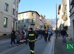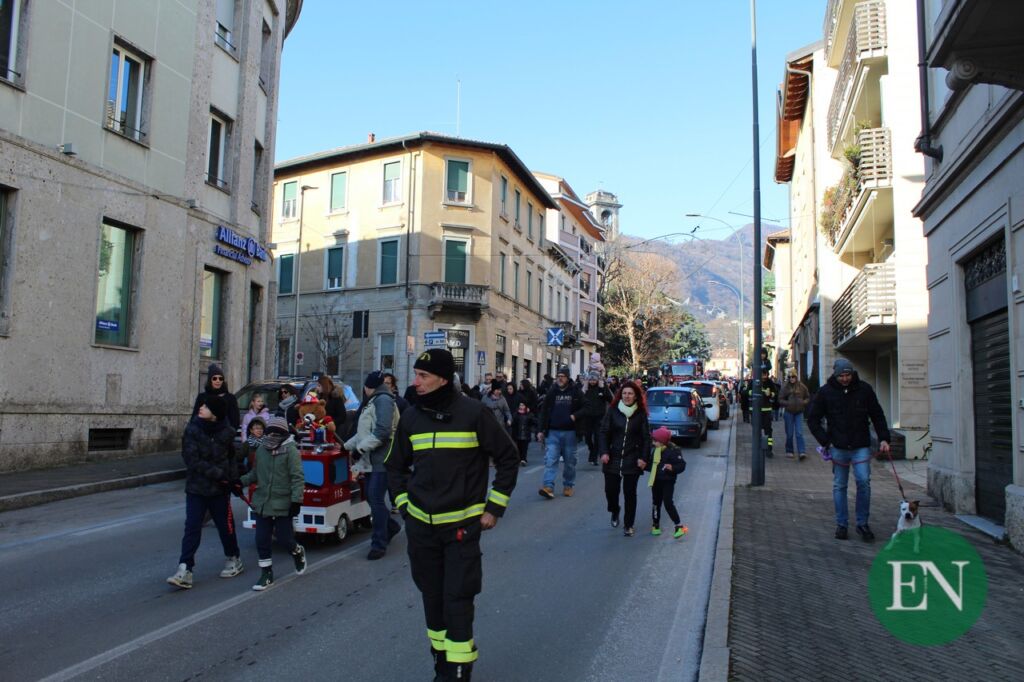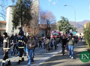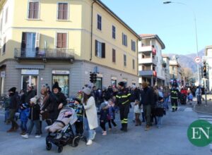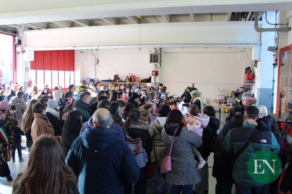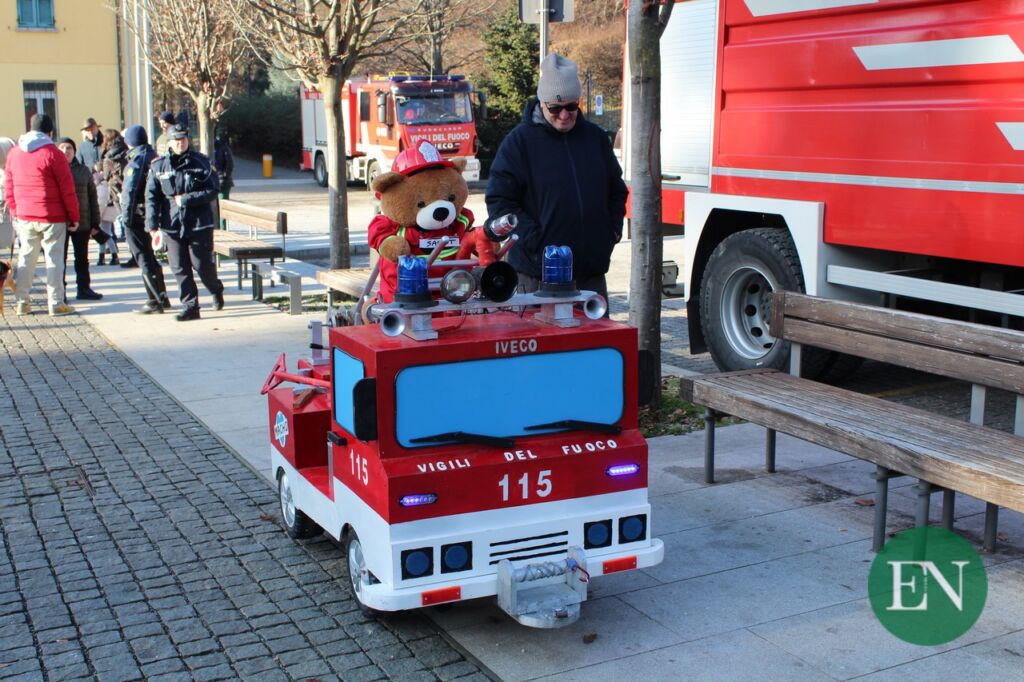 Dopodiché è partito il corteo alla volta della caserma dei pompieri passando per via XXV Aprile, via Volta e viale Turati. Alla testa della sfilata c’era un’originale carrozza a cavallo che trasportava i bambini più piccoli e una riproduzione in miniatura di autopompa, oltre che i mezzi di soccorso reali.