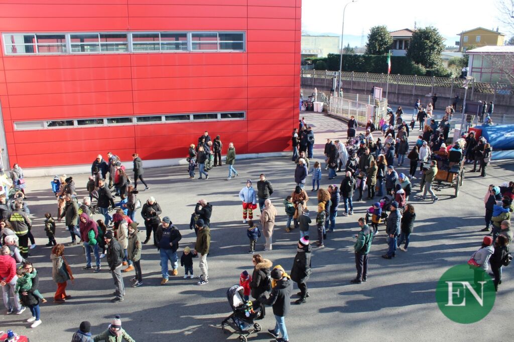 Una volta giunti in caserma, stracolma di gente, i bambini hanno potuto visitare gli automezzi e ricevere un ulteriore dono speciale dalla Befana. Mentre, gli adulti si sono potuti rifocillare con un piccolo aperitivo per farsi gli auguri e darsi appuntamento all’anno prossimo.