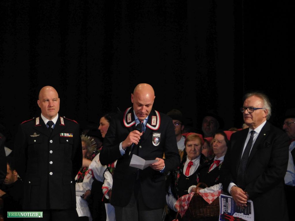 Sul palco del teatro Excelsior sono quindi sfilati artisti e gruppi di Erba e dintorni che con le loro performance hanno voluto rendere omaggio all’operato del luogotenente. Il duo d’archi composto da Luisa Bellitto al violino e da Daniele Fiori al violoncello, la poetessa dialettale Rosanna Pirovano, il poeta Franco Gottardi, l’orchestra e coro dell’Accademia Europea di Musica e i gruppi folkloristici de I Brianzoli di Ponte Lambro, I contadini della Brianza di Albavilla e Città di Erba I Bej si sono avvicendati sulla scena portando uno spaccato delle tradizioni, della cultura e dell’arte erbesi.