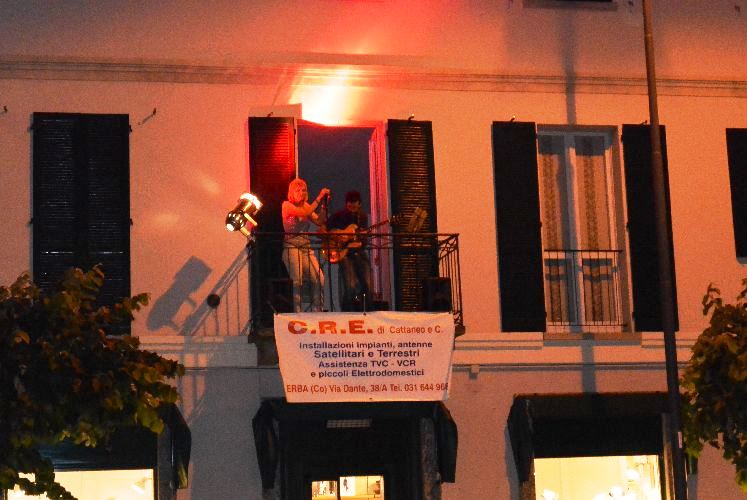 Ma il vero fiore all’occhiello è stato l'”esperimento”, un’idea dell’assessore al Commercio Angelo Cairoli in collaborazione con Mauro Pina. Per non intralciare le dimostrazioni delle associazioni sportive nelle vie centrali della città si è ben pensato di far traslocare la musica sui balconi. I gruppi hanno quindi animato la notte erbese “dall’alto” lasciando di stucco coloro che passeggiavano per le vie del centro.