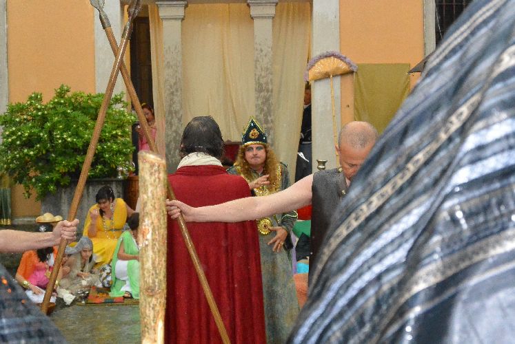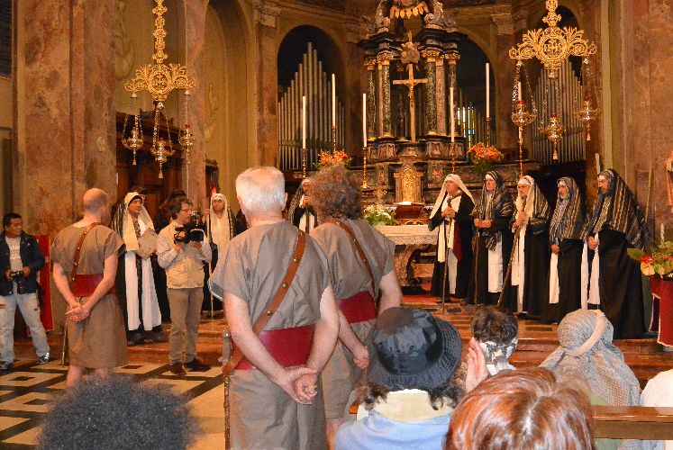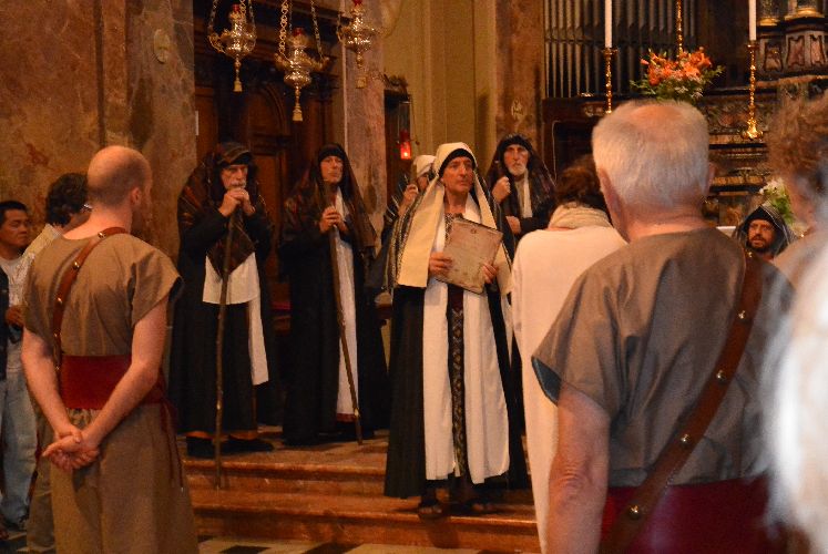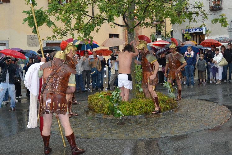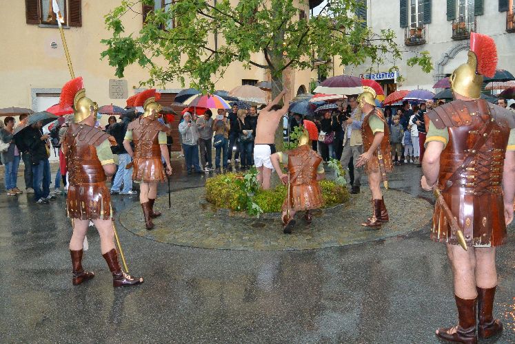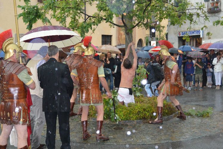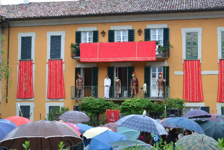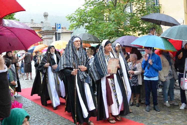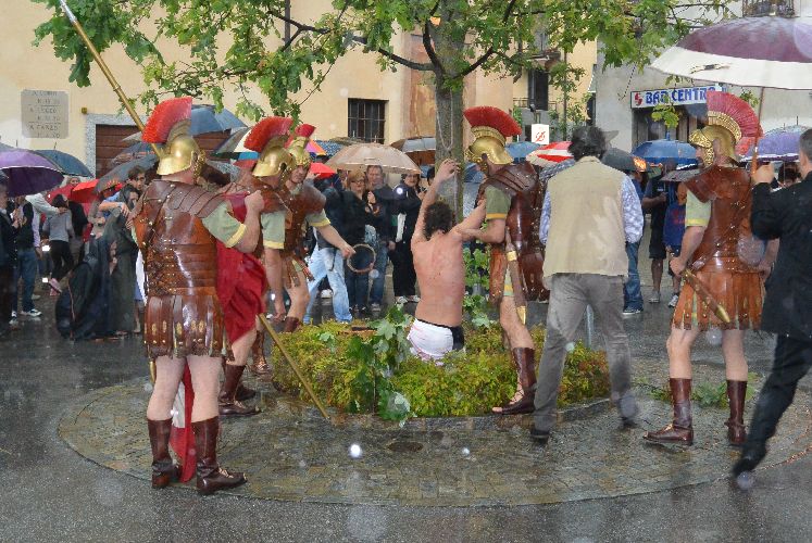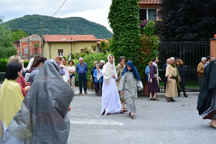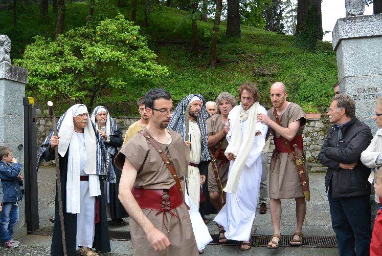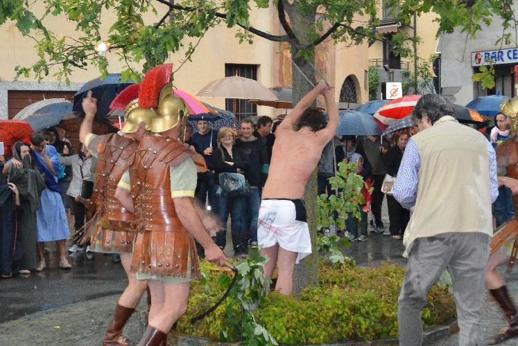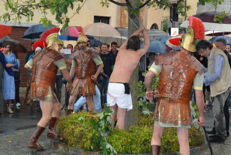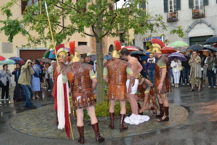 Non è stato possibile, però, arrivare fino alla crocifissione di Gesù al campo dei padri Barnabiti: l’ultima scena è stata la flagellazione in piazza. Tante persone avevano già lasciato il corteo, in verità, da una buona mezz’ora perché aveva iniziato a piovere copiosamente. Il pubblico, così come attori e organizzatori, è rimasto dispiaciuto per il tempaccio che si è abbattuto sul paese perché lo spettacolo stava piacendo molto e veder guastato l’impegnativo lavoro di un anno di Cristina Colombo e Edoardo Sormani, così come gli sforzi di un centinaio di attori locali coinvolti nel progetto, era un vero peccato.