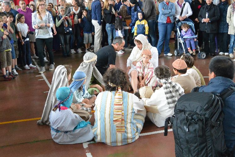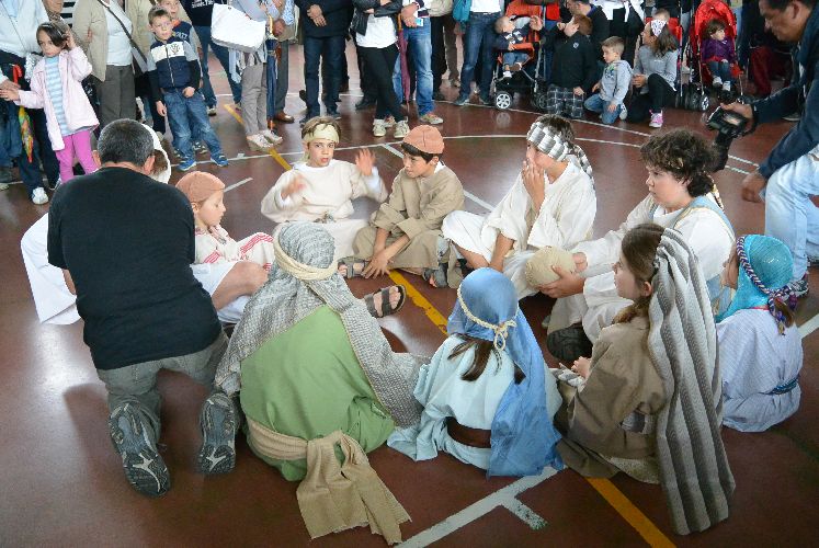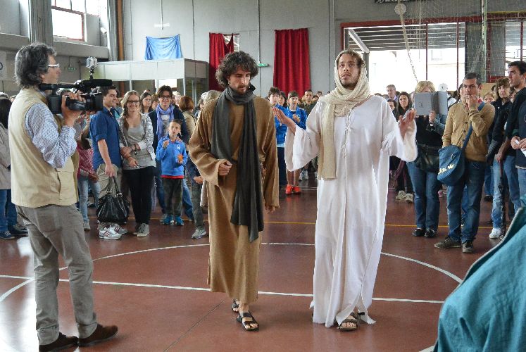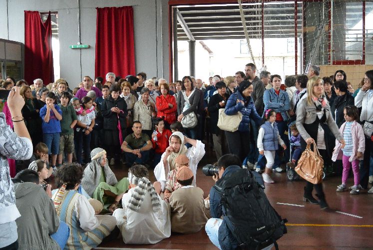 Il teatro dei sogni aveva pensato a una Passione fatta in nove tappe dislocate in diversi punti del paese. E stava riuscendo davvero bene, con un seguito di persone che si spostava da una scena all’altra con trasporto, camminando tra gli attori in costume.