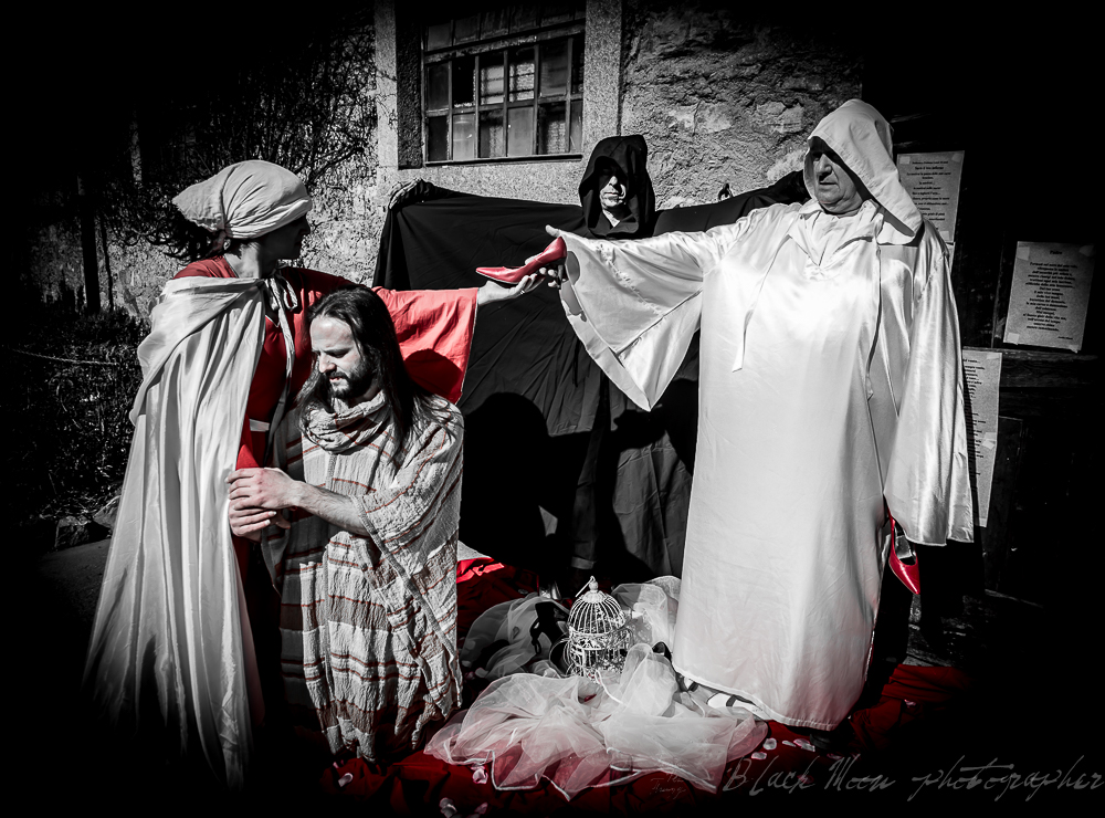 La parte del Cristo è interpretata da Aron Corti, l’angelo è interpretato da Paolo Castagna, la morte da Orsenigo Gianluigi, il ruolo della Madre invece dalla poetessa Minasi.