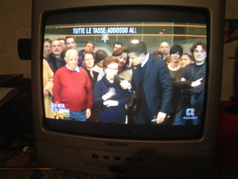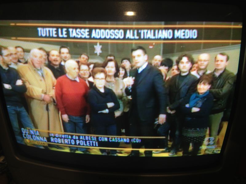Una trentina le persone che si sono presentate all’appuntamento. La puntata della trasmissione, condotta in studio da Paolo Del Debbio, con la collaborazione sul posto di Roberto Poletti, aveva al centro il tema delle tasse: “Tutte le tasse addosso all’italiano medio”.