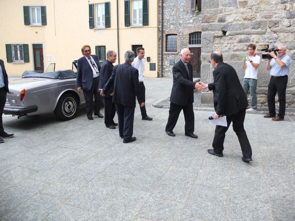 Don Bruno Borelli ha accolto il Cardinale e il Vescovo all’entrata, insieme hanno poi pregato sulla tomba dove il volto sorridente del nostro amatissimo Aristide Pirovano pareva brillare di una luce nuova; il Cardinale e il Vescovo si sono inginocchiati in preghiera in un momento di fede intensa che ha suscitato tra i presenti una grande emozione e qualche lacrima.